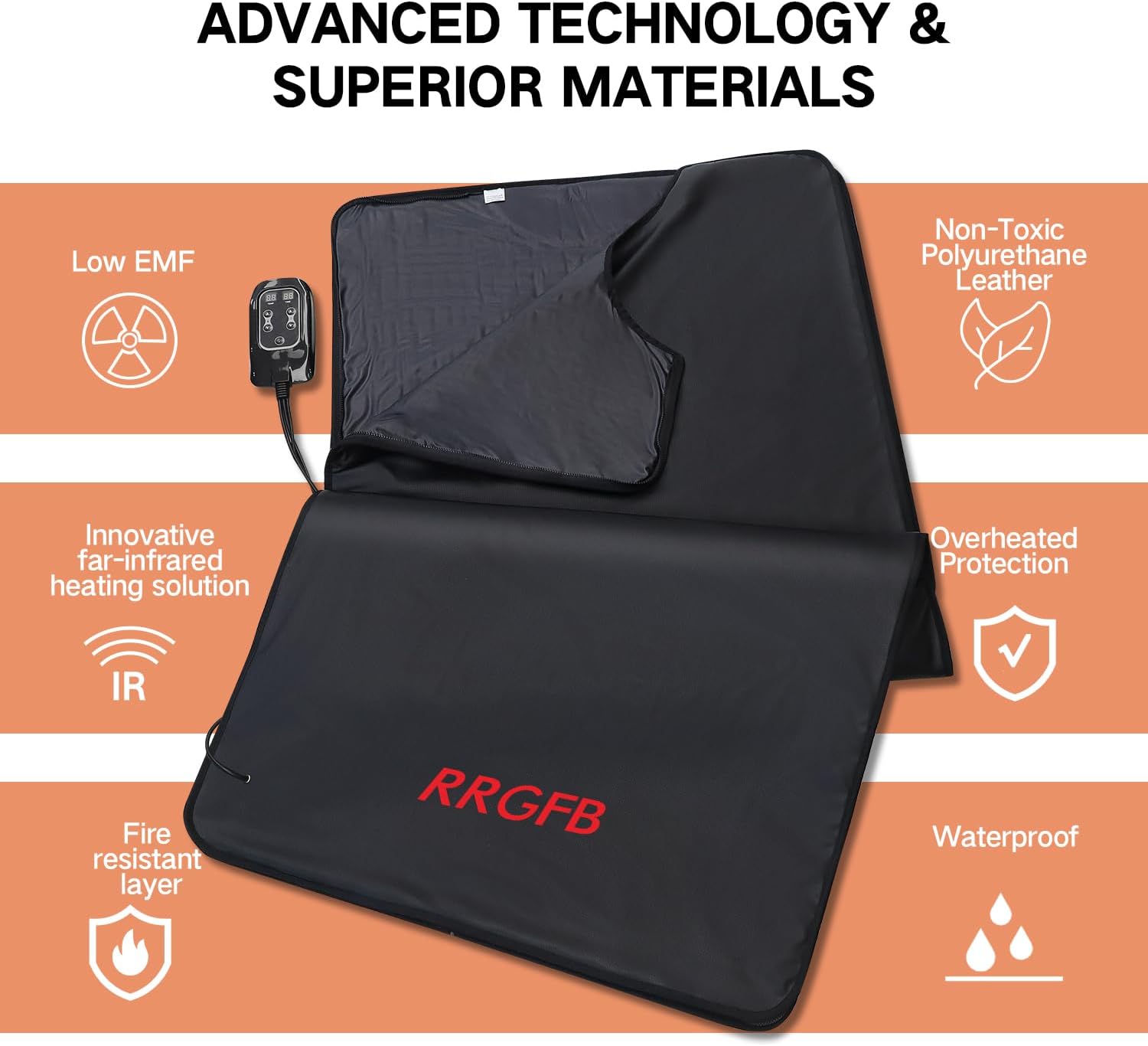 Low EMF Portable Infrared Sauna Blanket for Detox and Home Relaxation, Adjustable 1-60 Min Timer, 95-167℉ Temp Range, 6 ft x 2.95 ft, Durable PU Leather Cover