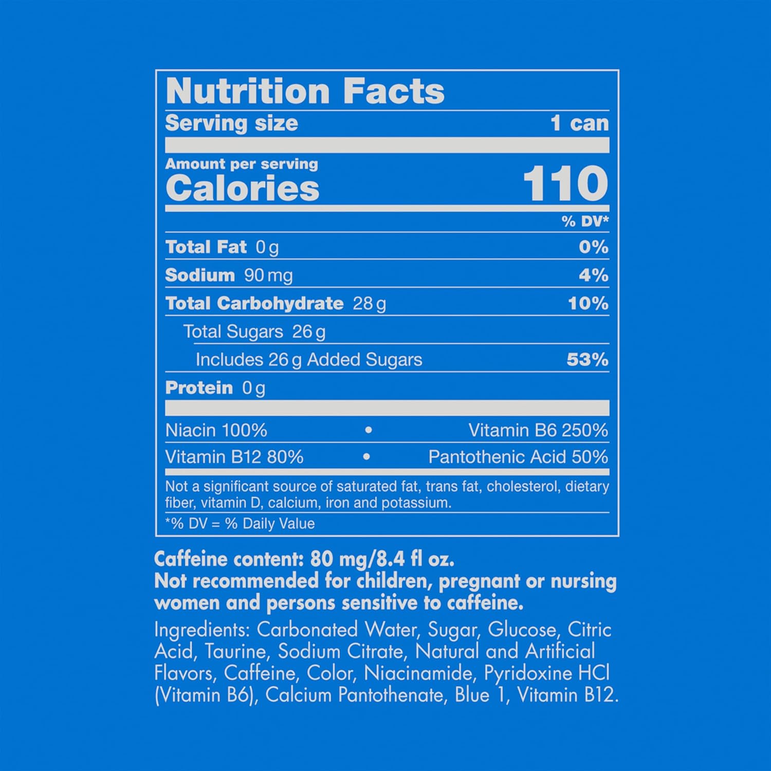 - Each 8.4 fl oz can of Red Bull Energy Drink contains 80 mg of caffeine per serving, about the same amount of caffeine as a home-brewed cup of coffee