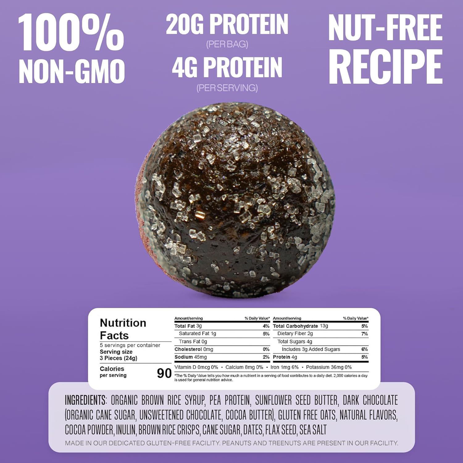 - RIDICULOUSLY TASTY CHOCOLATE BROWNIE BITES: These mouth-watering brownie bites are pleasantly soft and chewy while offering 4 grams of protein in each serving. Our easy to store 6 x 4oz bags helps you bring snacks on the go