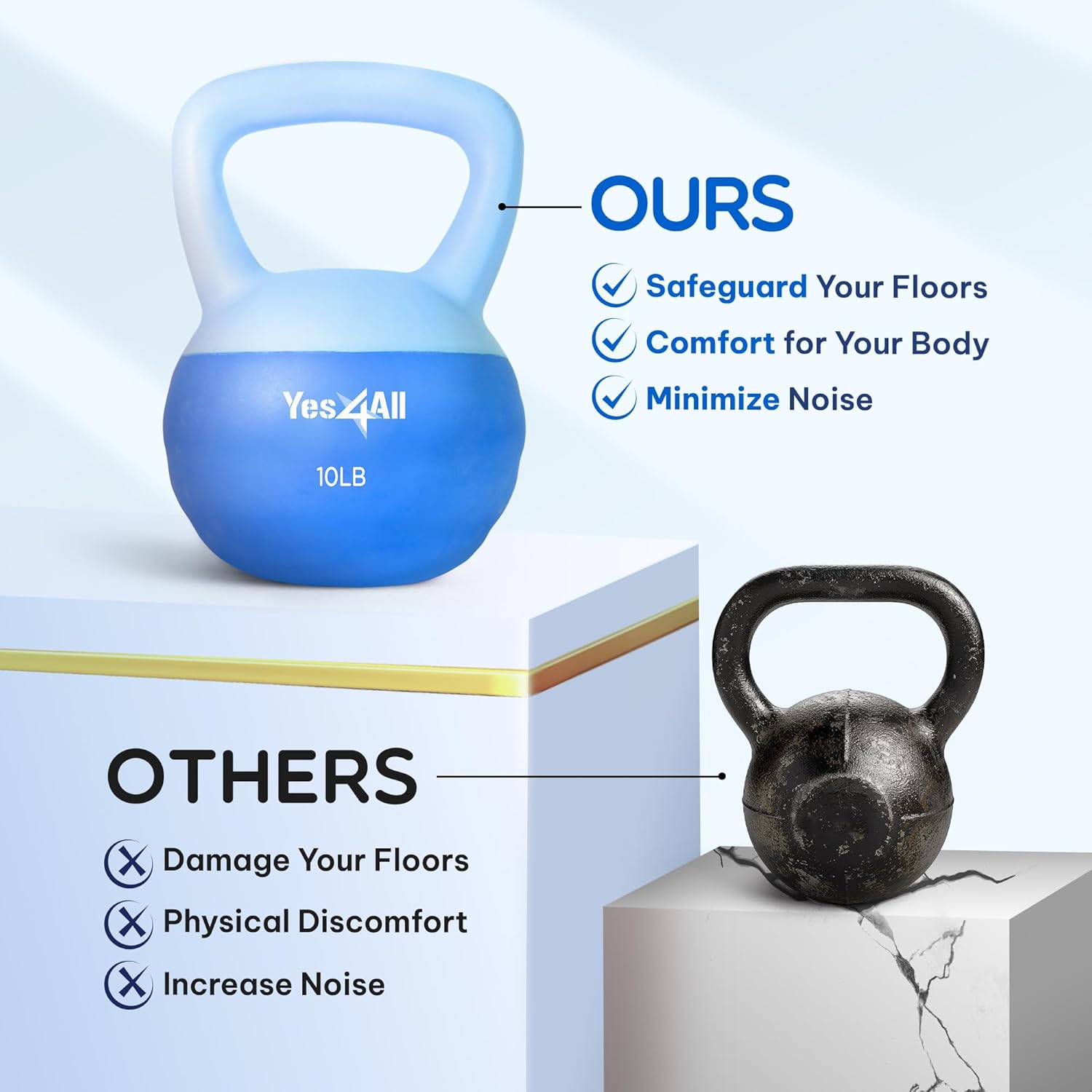 - REDUCE NOISES: The soft kettlebell features soft PVC material & shock-absorbing bottom, reducing loud noises & lessen drop impact; This exercise weights for women is gentle to the touch, its soft curves offer peace of mind during exercising