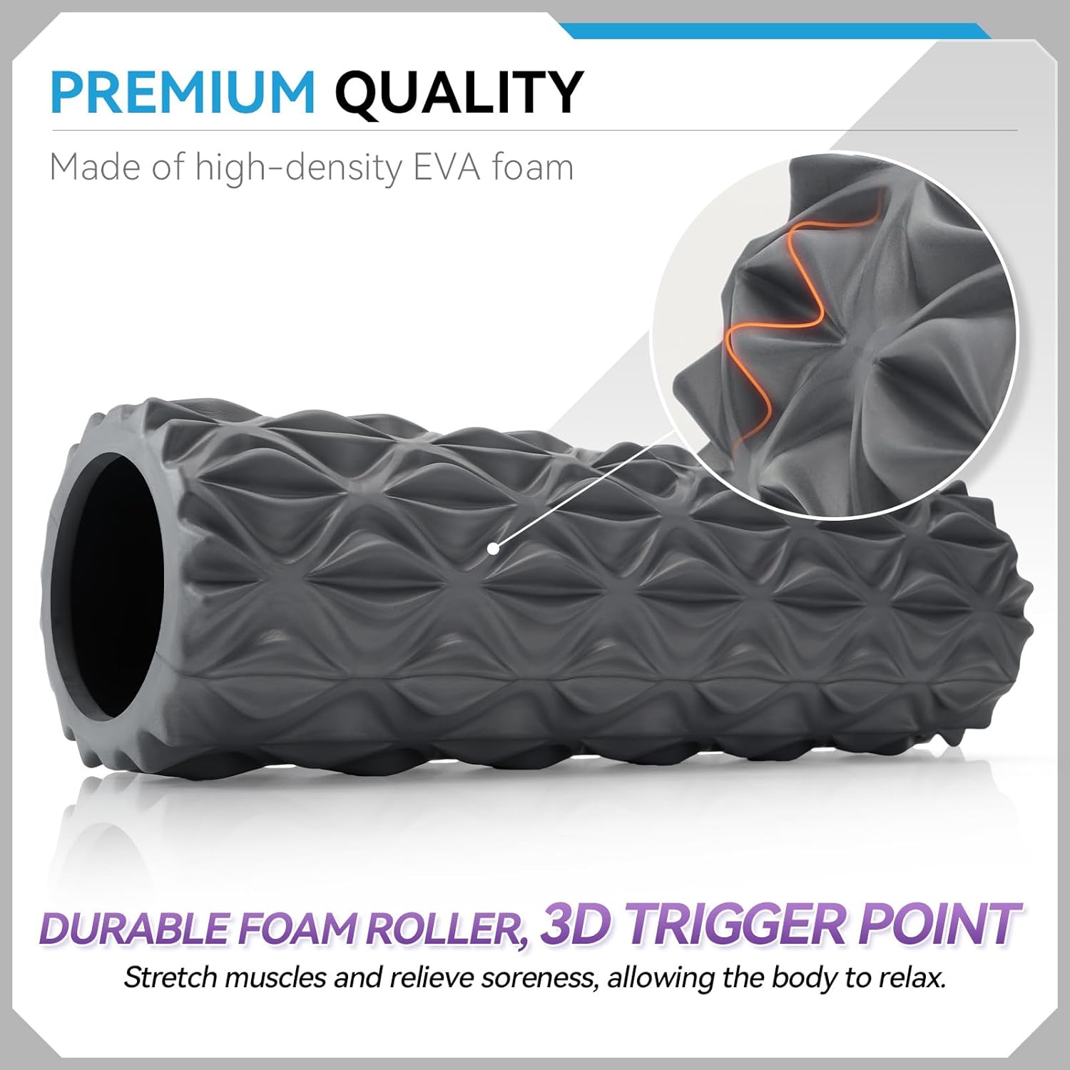 Foam Roller - 15 inch Deep Tissue Massager for Muscle Massage, Myofascial Trigger Point Release, Exercise, Yoga, Pilates & Stretching(Gray)