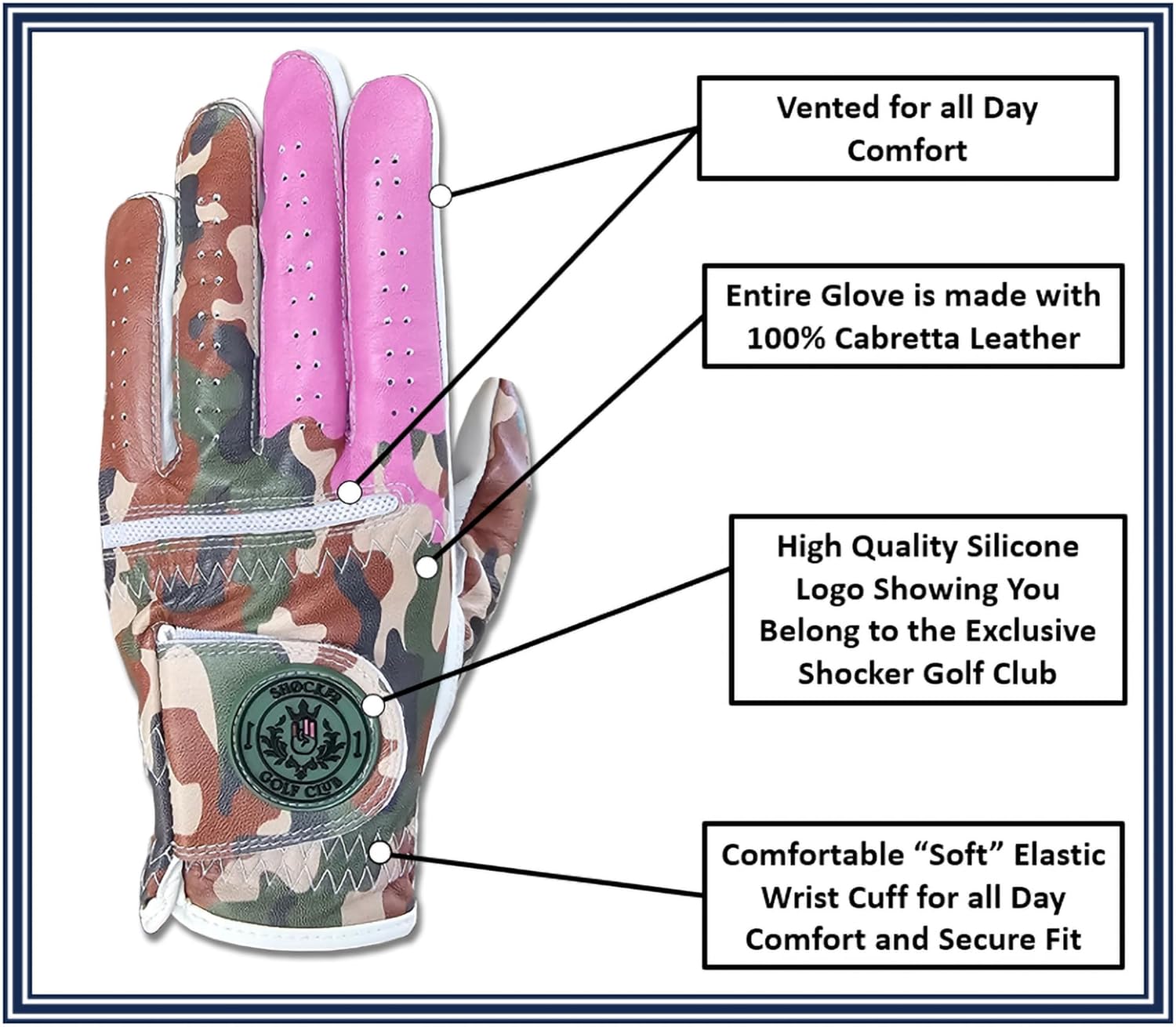 Shocker Camo Golf Glove Men's - Premium Cabretta100% Leather, Durable Grip, White and Camo, Adult Men's Golf Gloves, Funny Gag Gift, Left & Right Handed, Small to XXL Sizes