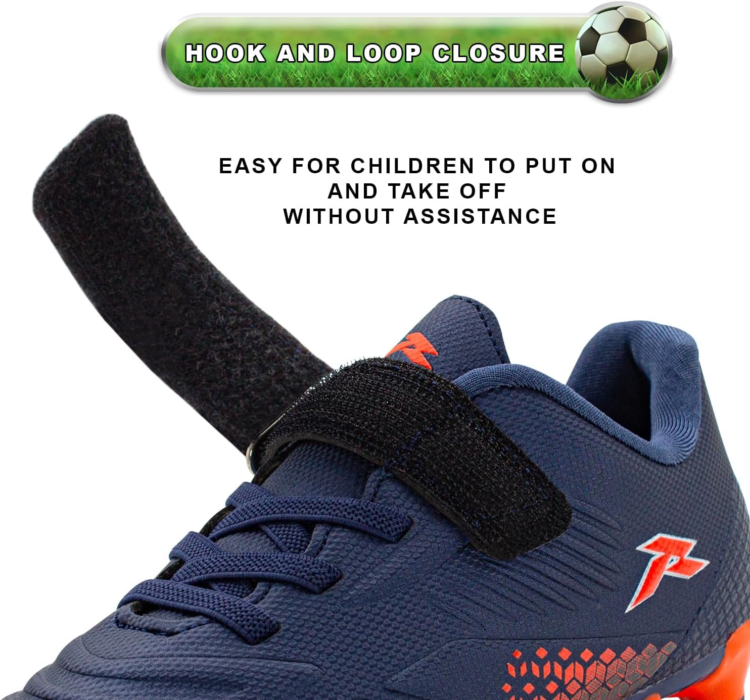 - Hook-and-Loop Fasteners for Easy Wear: With convenient hook-and-loop fasteners, kids can quickly put on and take off their cleats. The adjustable closure guarantees a secure fit, saving time and promoting independence for young athletes.