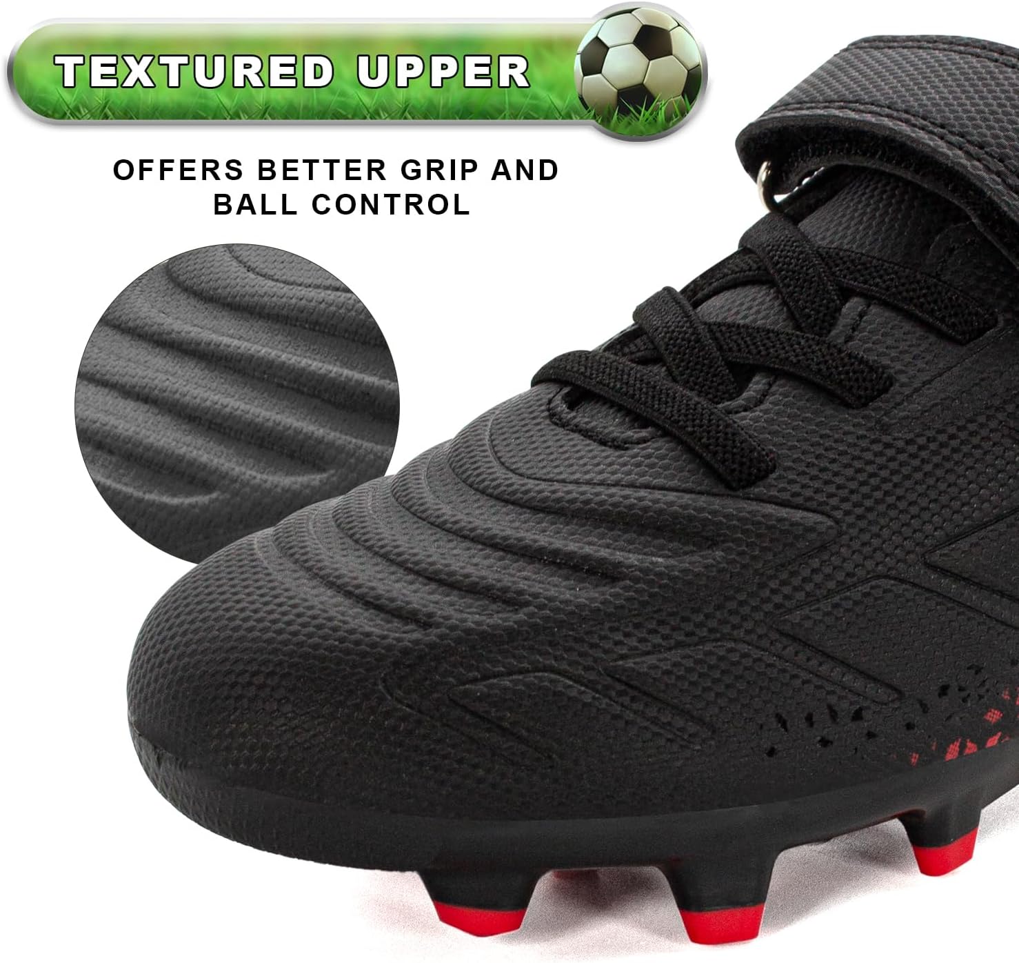 - Hook-and-Loop Fasteners for Easy Wear: With convenient hook-and-loop fasteners, kids can quickly put on and take off their cleats. The adjustable closure guarantees a secure fit, saving time and promoting independence for young athletes.