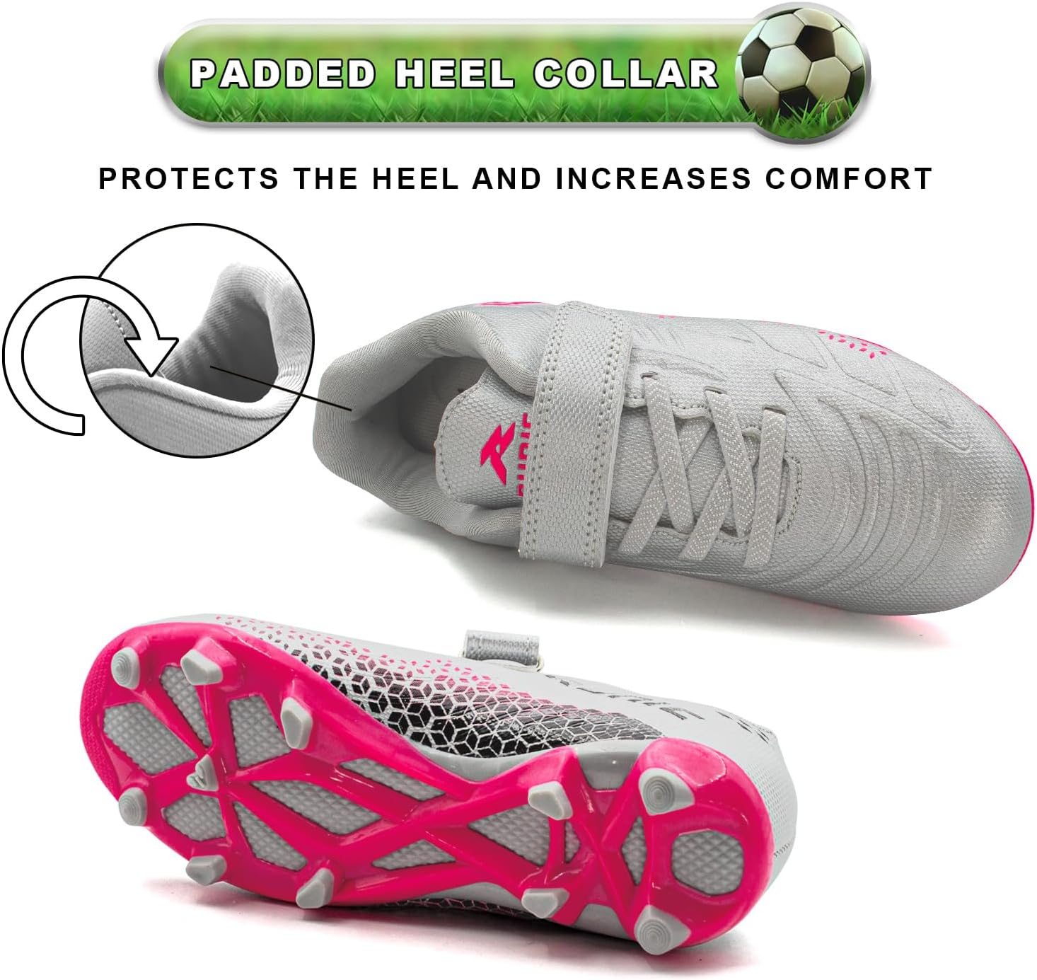 - Hook-and-Loop Fasteners for Easy Wear: With convenient hook-and-loop fasteners, kids can quickly put on and take off their cleats. The adjustable closure guarantees a secure fit, saving time and promoting independence for young athletes.