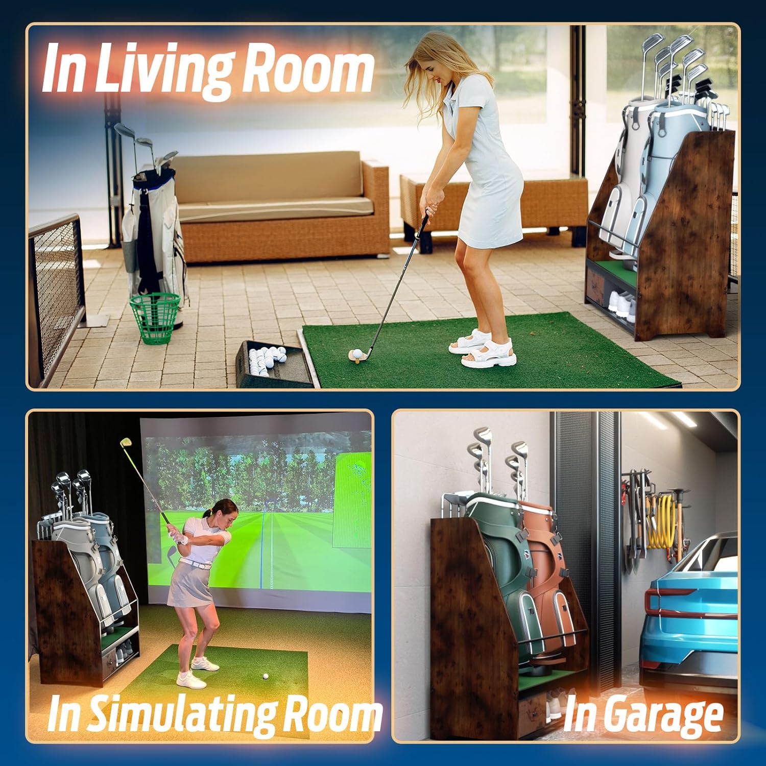 - Elegant Style: With its natural wood grain finish, this golf bag rack adds style to any room, from garages and living rooms to simulator spaces
