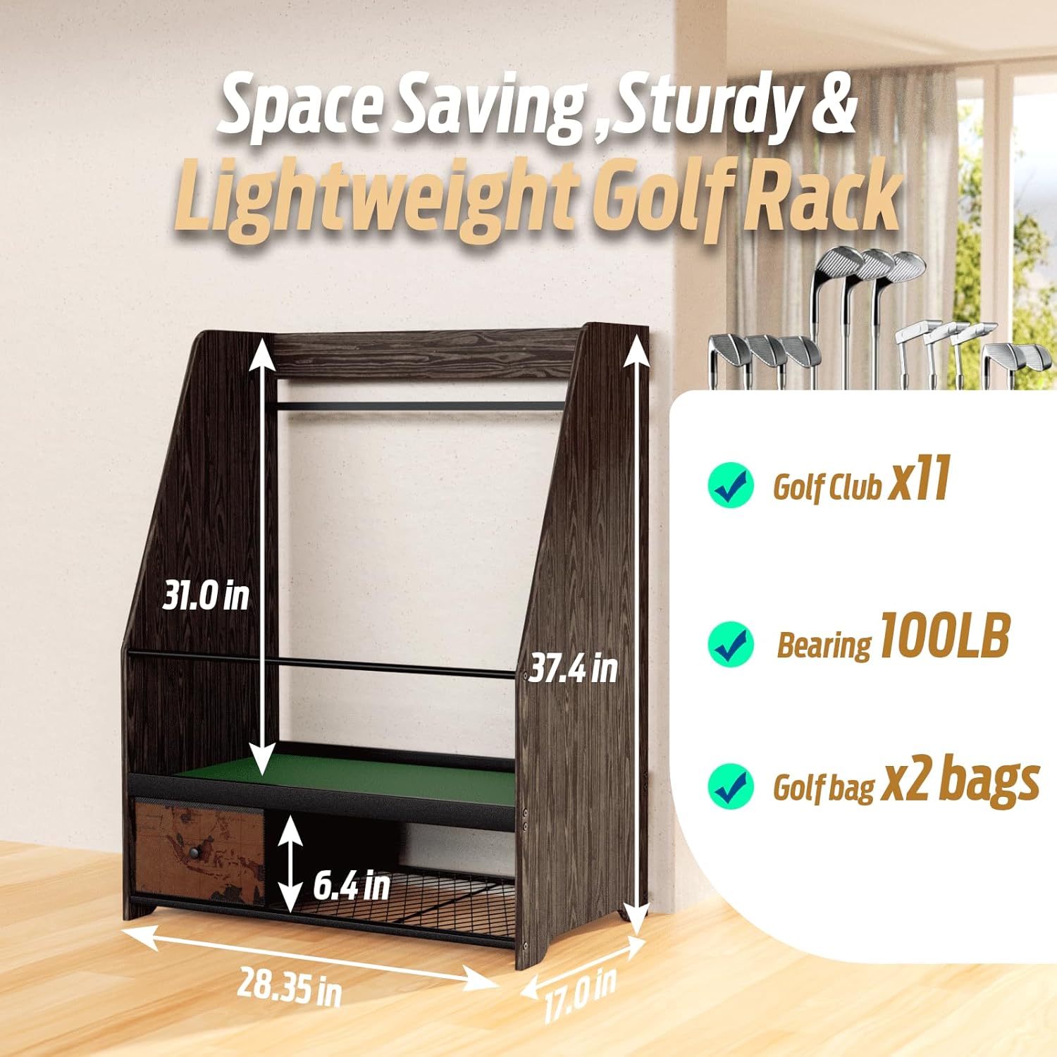 - Sturdy Weight Capacity: Built with a solid wood frame, this golf rack securely holds your equipment, providing stability and peace of mind