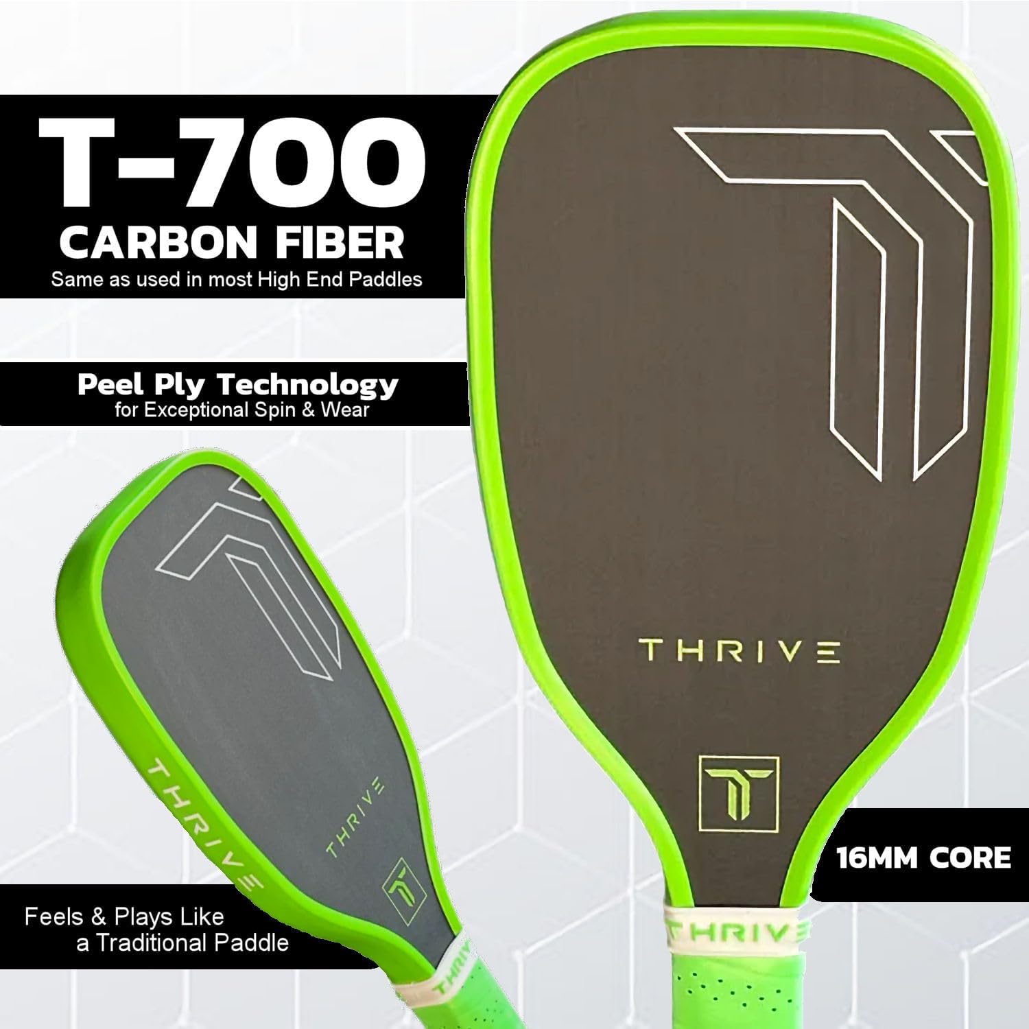 Thrive Pickleball Training Paddle Kit - Includes Trainer Paddle, 3 Fast Hands Mini Pickleballs & Paddle Eraser - T-700 Carbon Fiber, Extra Long Handle, 16mm Core