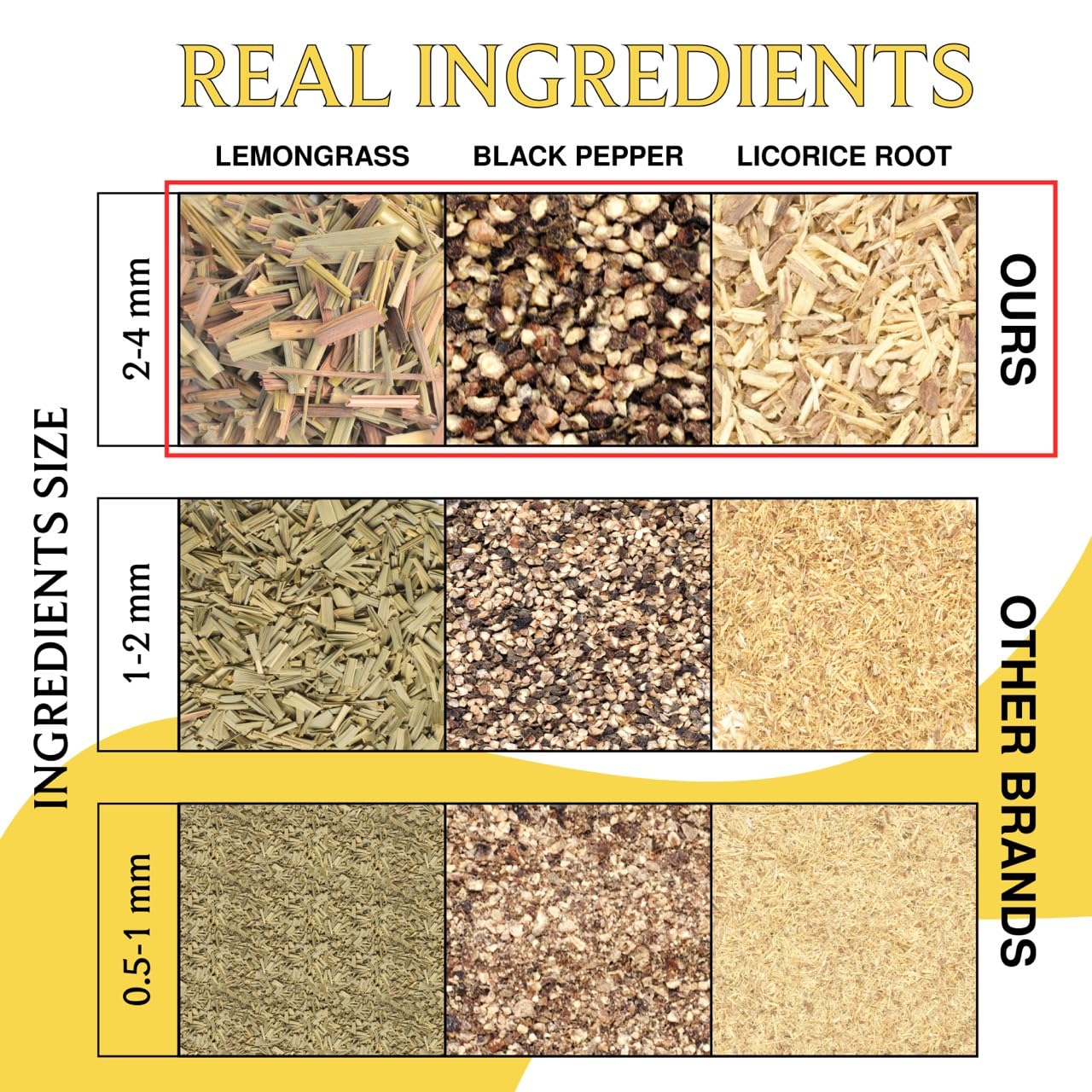 - PURE INGREDIENTS - our blends are made using ingredients of the highest grade ensuring a consistent brew and an intense colour when brewed. Herbs and spices used in the blends are of the highest quality and are procured from local farmers to ensure freshness and fair price.