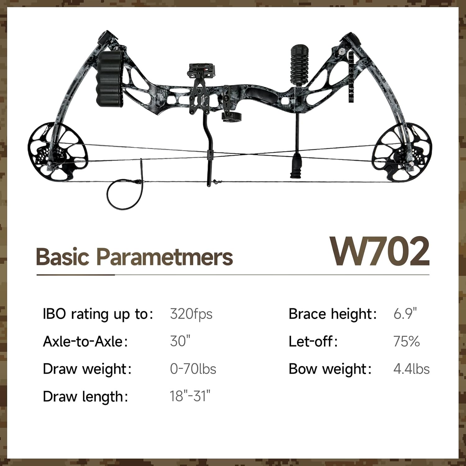 Compound Bows Draw Weight 30-70lbs Ready to Shoot, Bow and Arrow Set for Adults, Archery Set Come with All The Accessories
