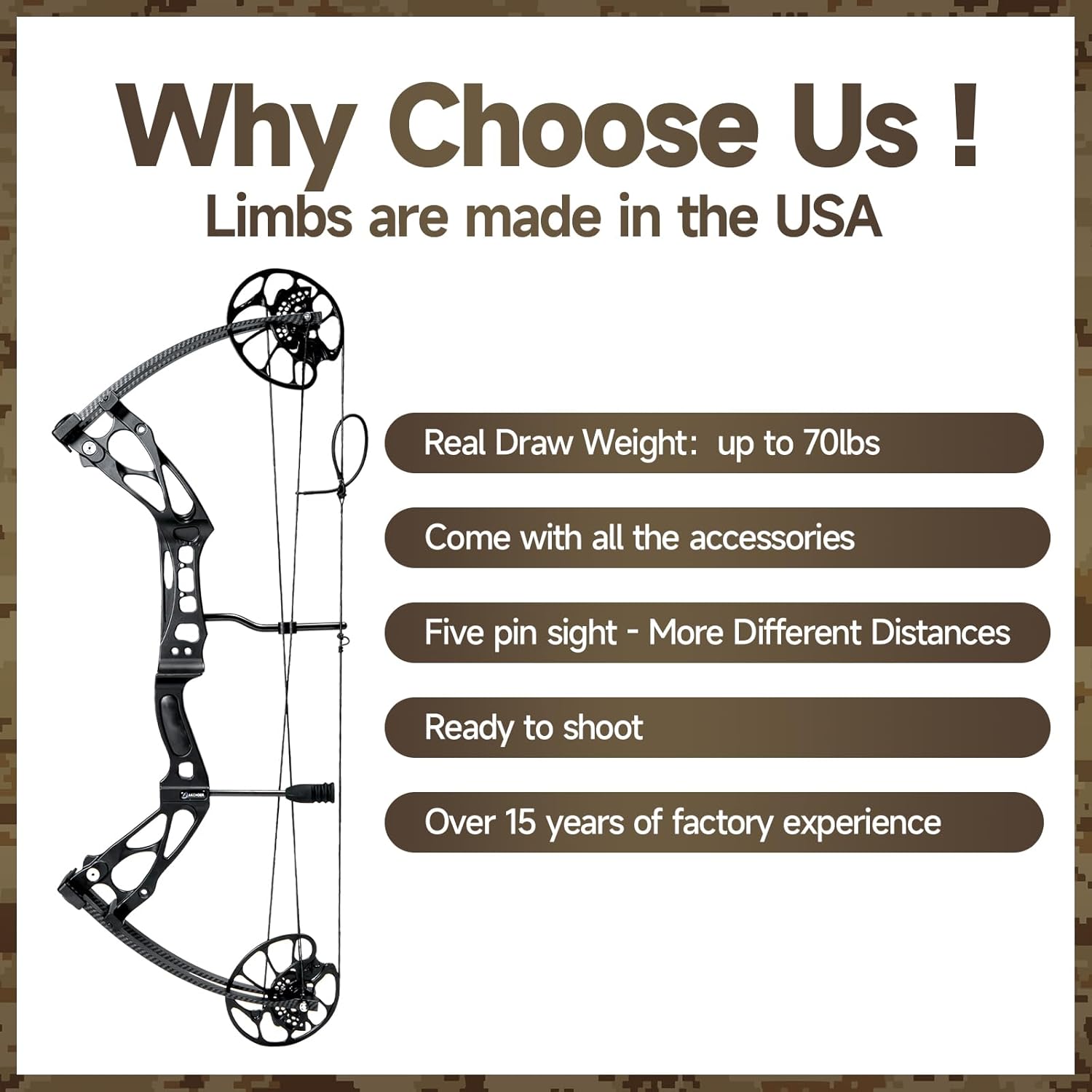 Compound Bows Draw Weight 30-70lbs Ready to Shoot, Bow and Arrow Set for Adults, Archery Set Come with All The Accessories