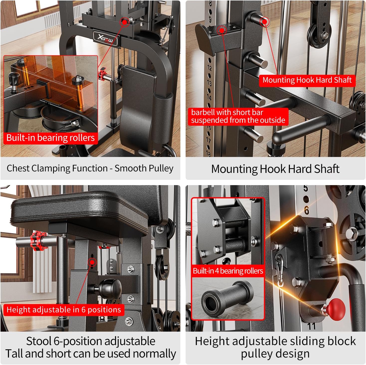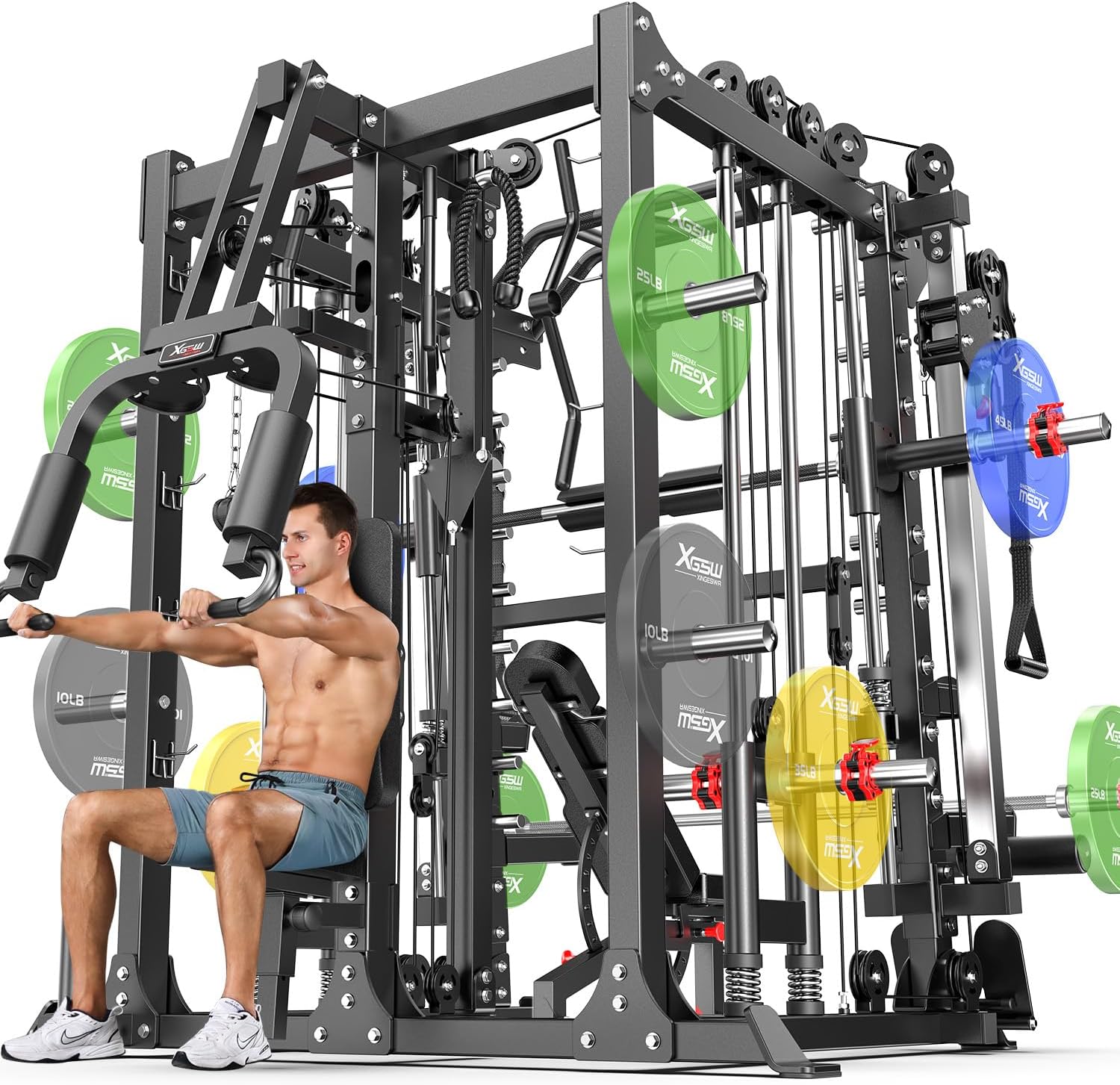 Smith Machine Power Rack Multifunctional Power Cage Deep Squat Rack Cable Crossover System Selectable More Training Attachment for Garage & Home Gym