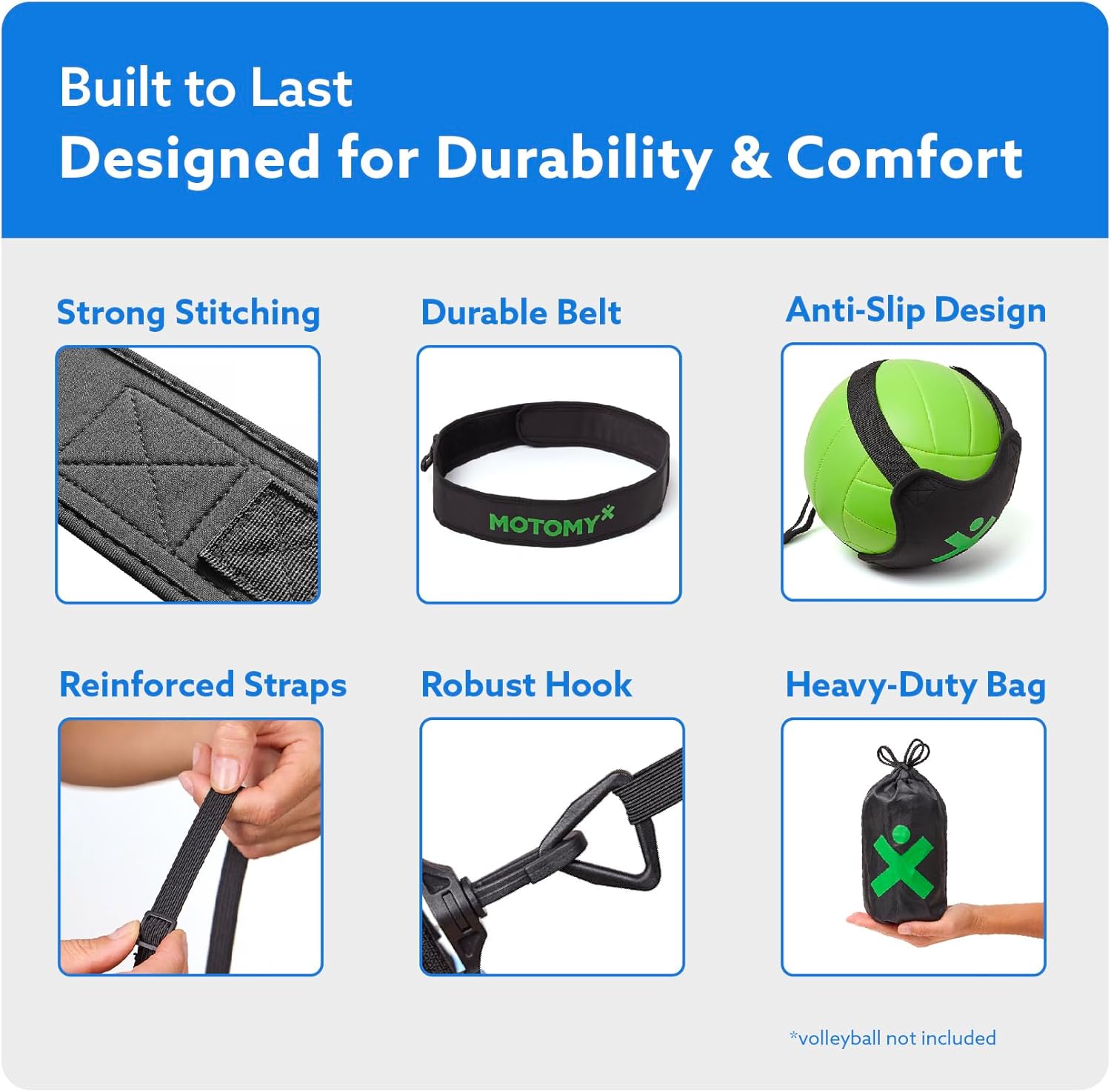 MOTOMY™ Volleyball Training Equipment Aid ‘VolleyPal’ – Solo Rebounder Trainer for Serve, Spike, Set & Pass; Indoor and Outdoor Practice Gear Gifts for Beginners & Experts
