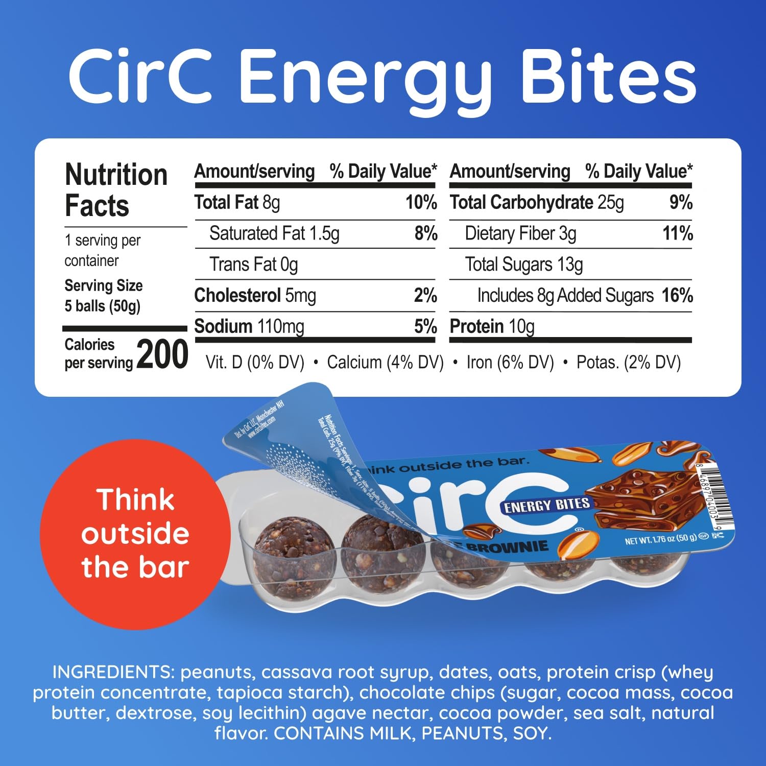 - PORTABLE ENERGY BITES: CirC reimagined the protein bar as 5 snackable energy bites, perfect for on-the-go, at work, or post-workout. Made with simple, natural ingredients like peanuts, oats, dates, and sustainable whey crisp, each high protein energy ball offers a well-balanced, homemade taste.