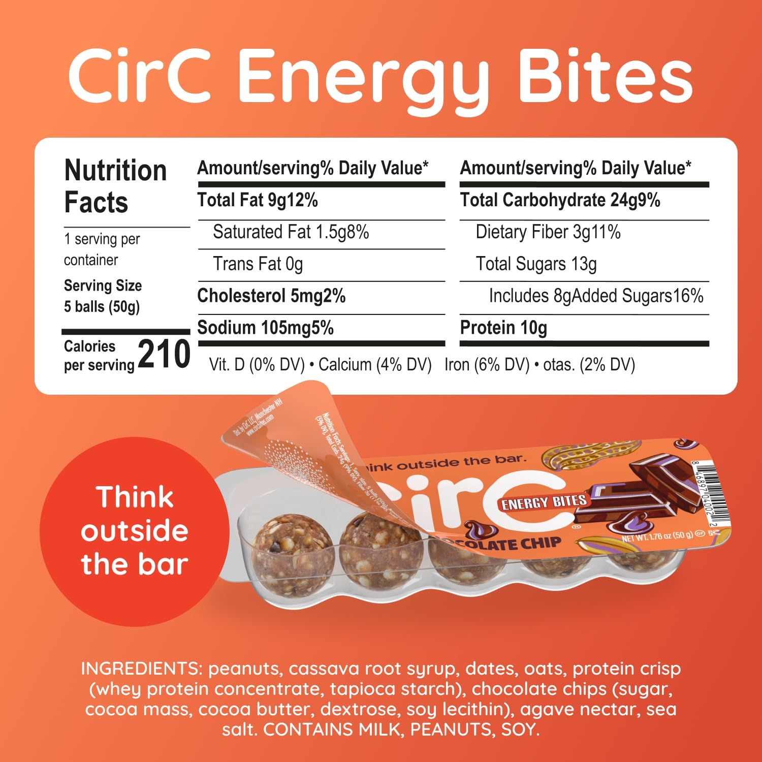 - PORTABLE ENERGY BITES: CirC reimagined the protein bar as 5 snackable energy bites, perfect for on-the-go, at work, or post-workout. Made with simple, natural ingredients like peanuts, oats, dates, and sustainable whey crisp, each high protein energy ball offers a well-balanced, homemade taste.
