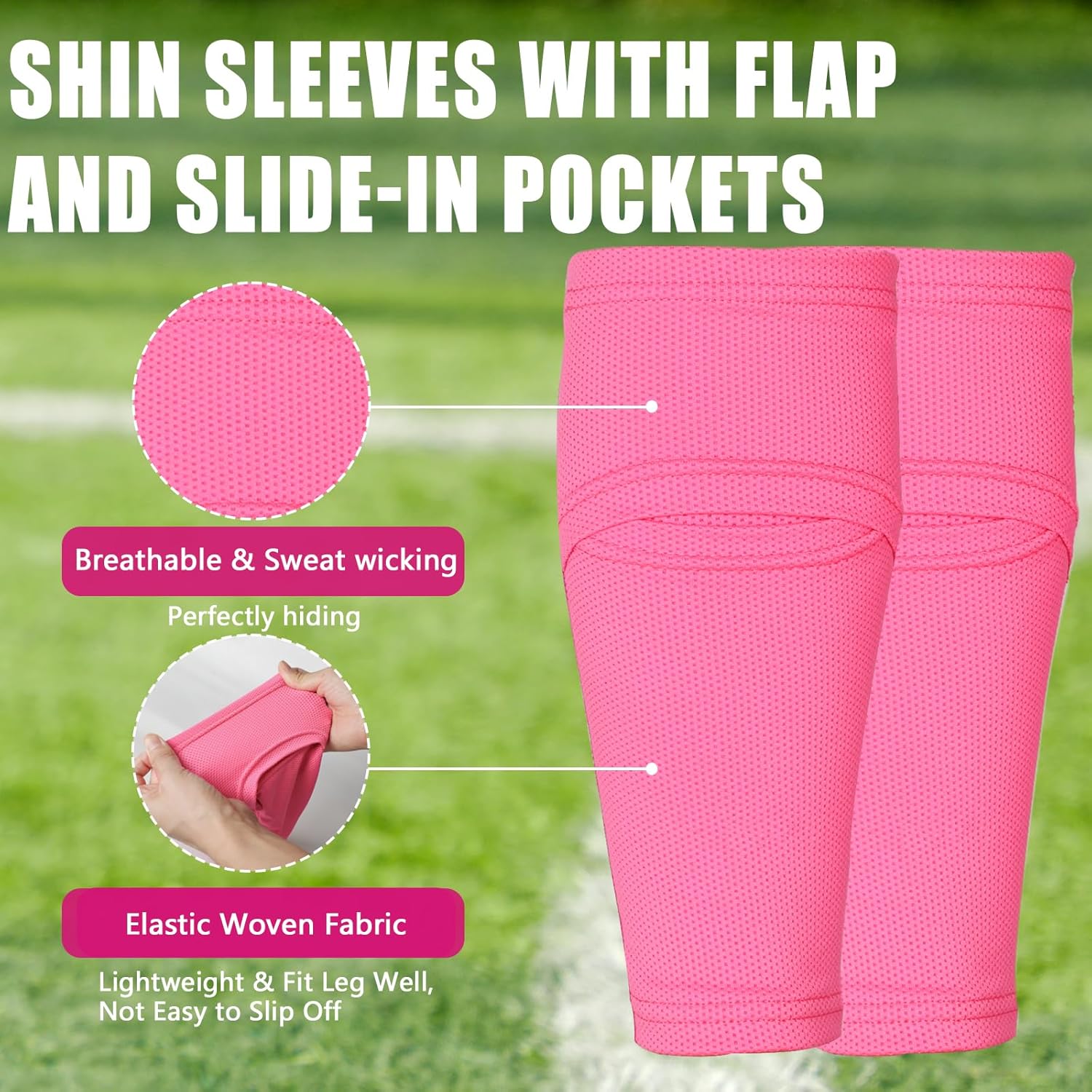 - Perfect Match and Unique Look : The perfect combination of rose red soccer shin guards, sleeves with optimized insert pocket and over the knee football socks that perfectly match your jersey and equipment to reflect your personal style. Can be used for daily training or competition, providing you with comfort