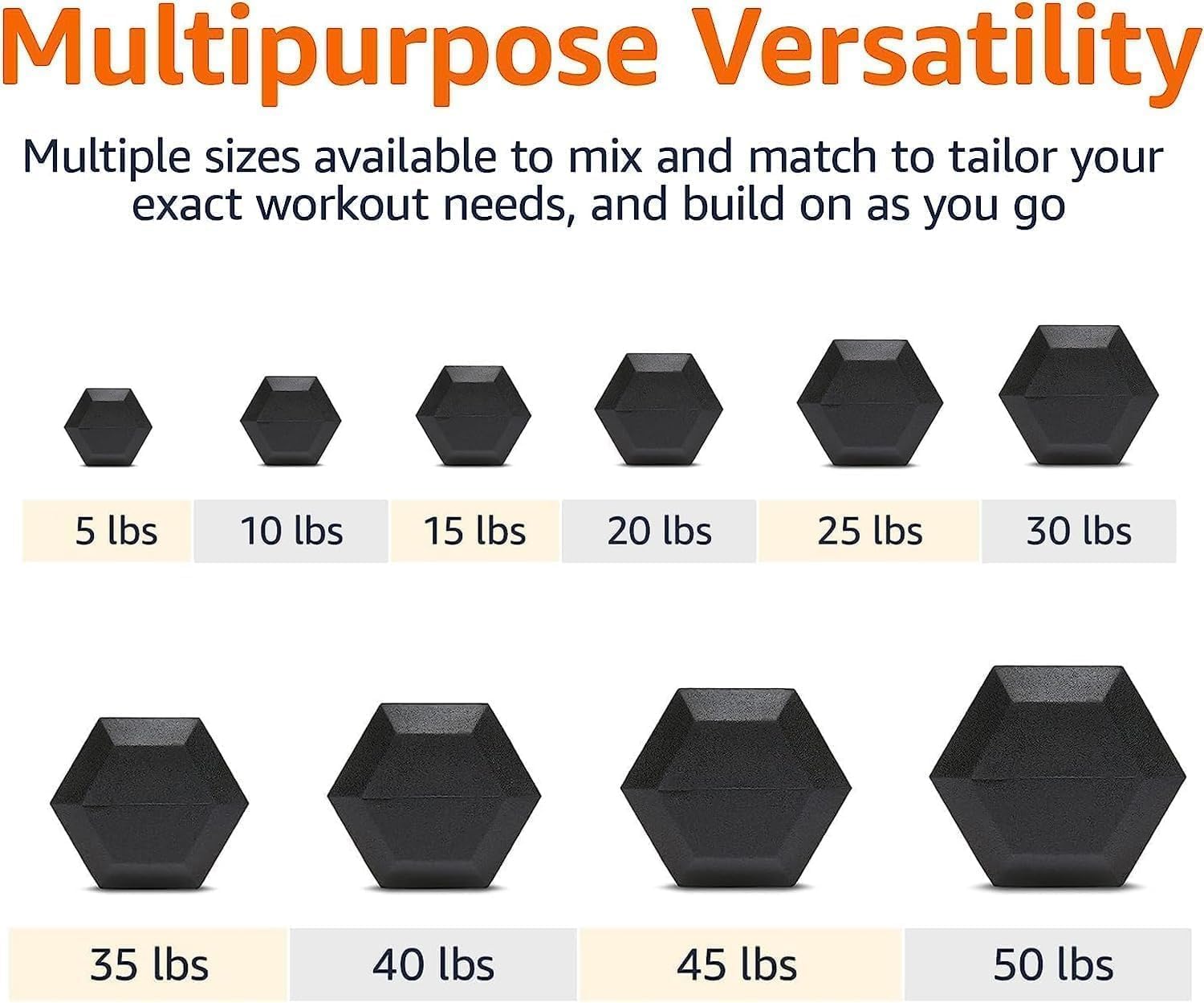 - - MATERIAL: Crafted from high-quality rubber with heavy-duty construction, these hex dumbbells are designed for long-lasting durability. The rubber encasing protects floors and reduces noise, making them ideal for home gym setups