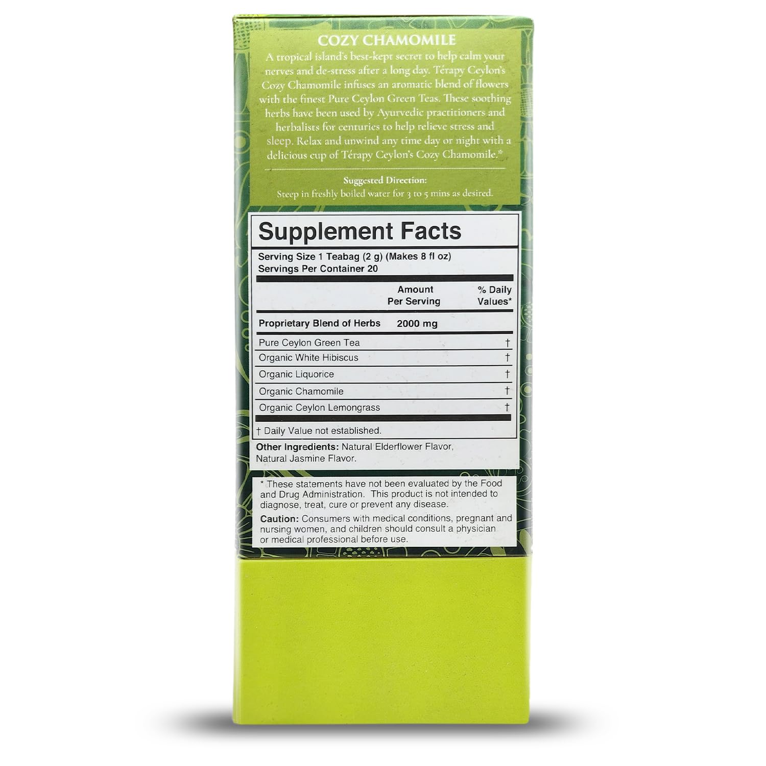 Tรฉrapy Ceylon CHAMOMILE TEA | USDA Organic Herbal Tea Bags | 100% Natural Ayurvedic Ingredients including Organic Chamomile, Ashwagandha, Cinnamon & Licorice| 20 Individually Wrapped Tea Bags