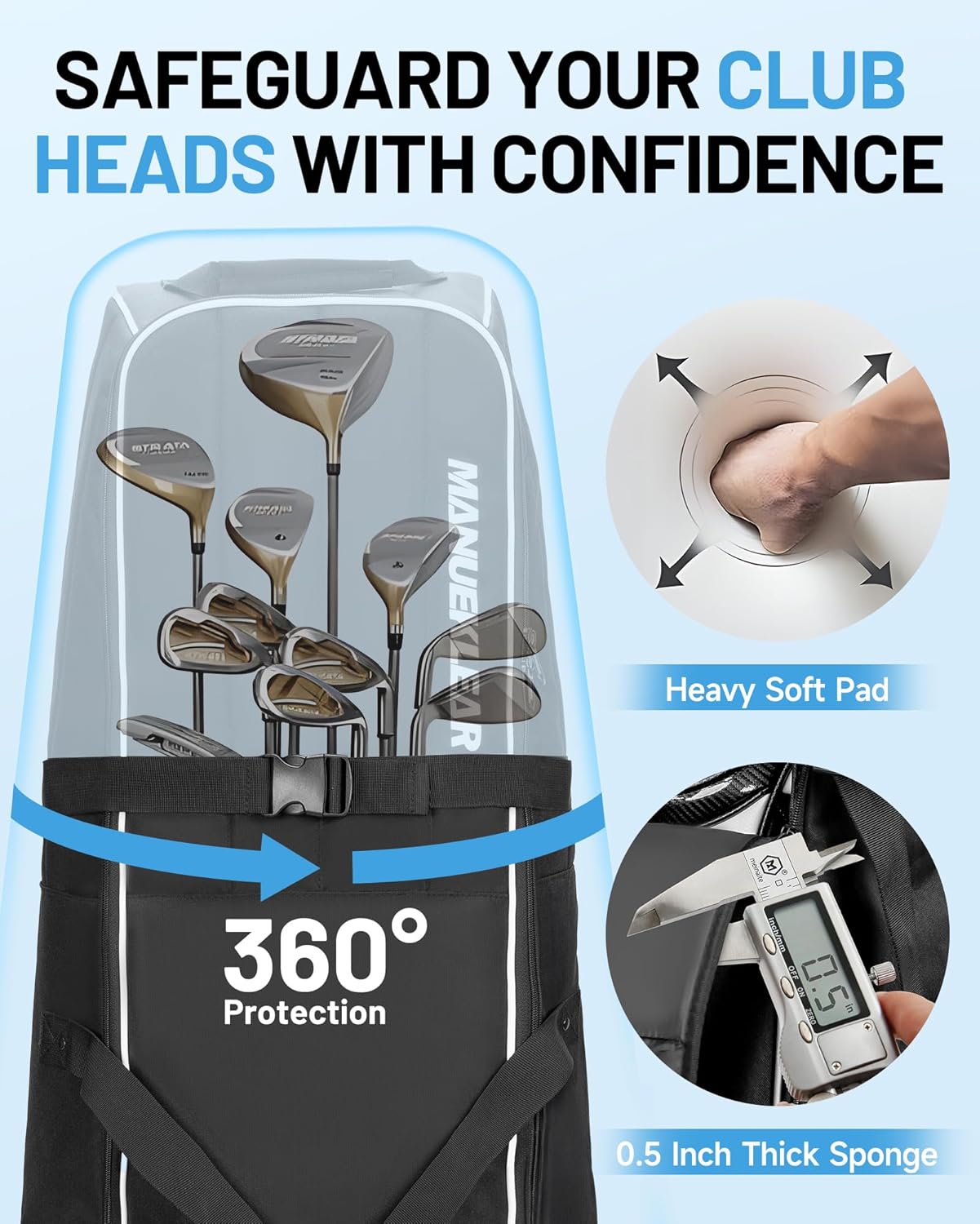 MANUEKLEAR 1680D Nylon Travel Golf Bags Club for Airlines with Wheels, Golf Travel Bags for Airlines with Padded Top, Golf Travel Case Cover with 3 Large Pocket for Golfer