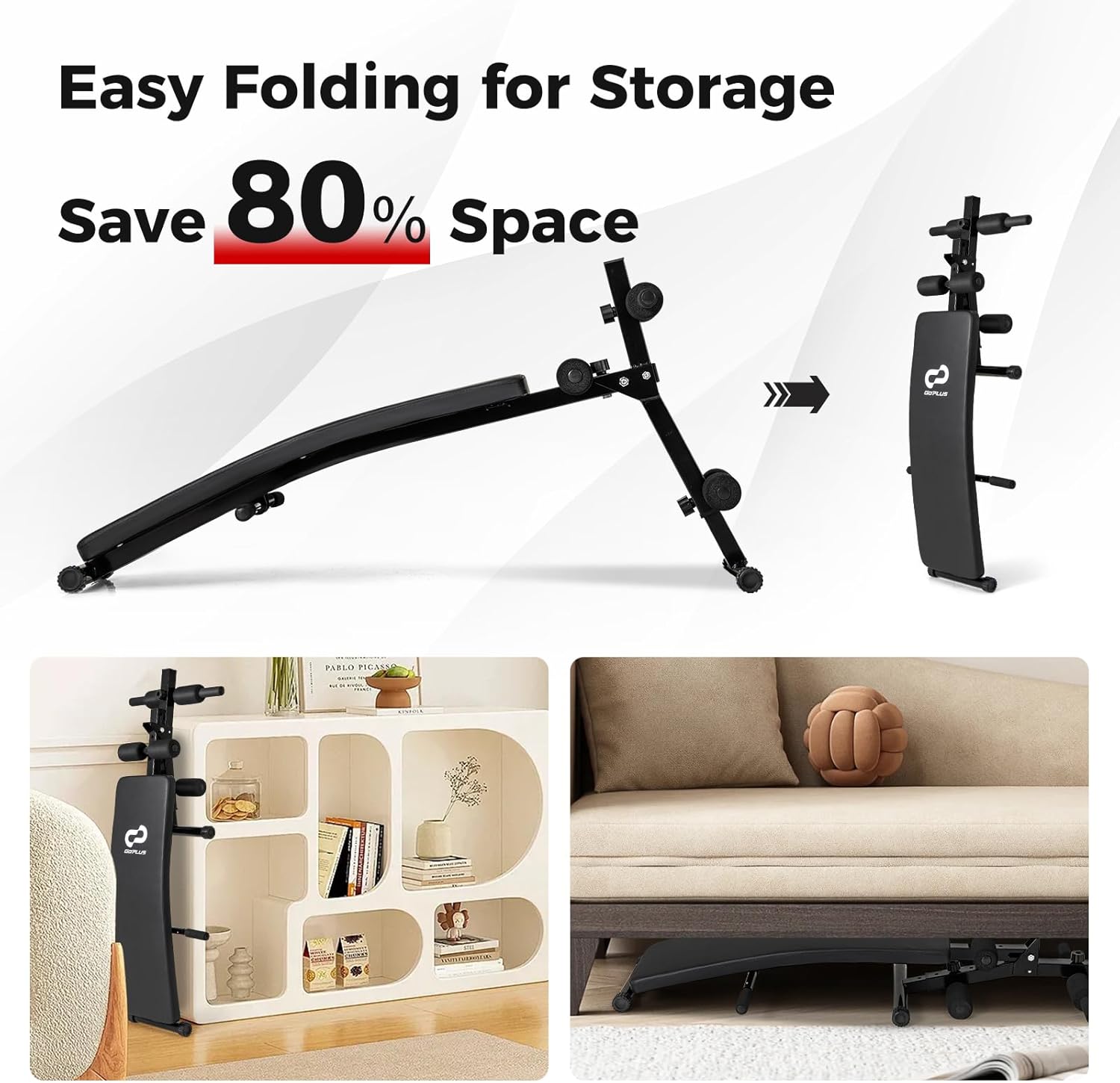 - Easy Folding for Storage: The curved slant board can be easily folded down into a narrow shape for compact storage, which will save 80% space when it is folded. You can store the folded workout bench in the cabinet or under the bed.