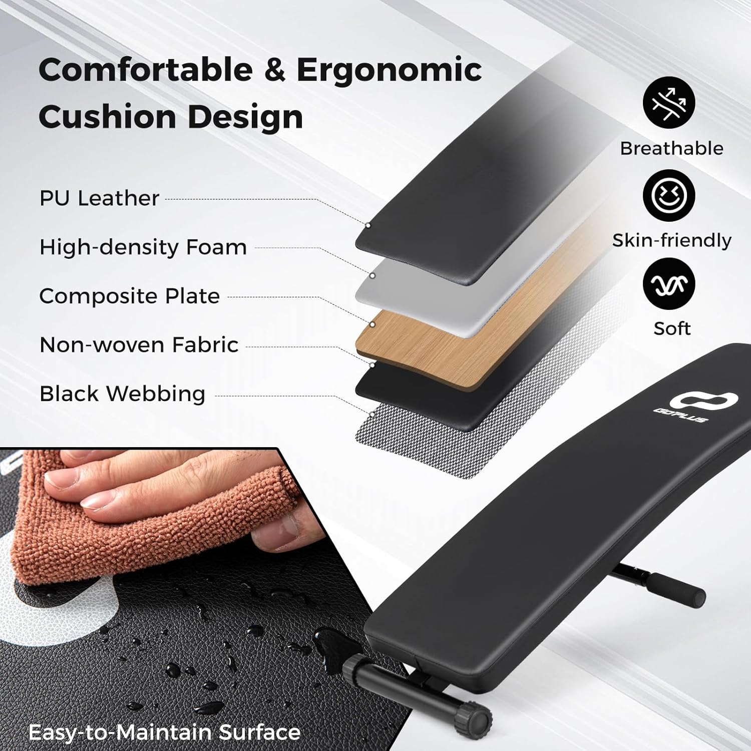 Goplus Adjustable Decline Sit Up Bench for Exercise, Foldable Curved Slant Bench with High Density Foam Cushioned Seat, Heavy Duty Metal Frame, Full Body Ab Workout Equipment for Home Gym, Black