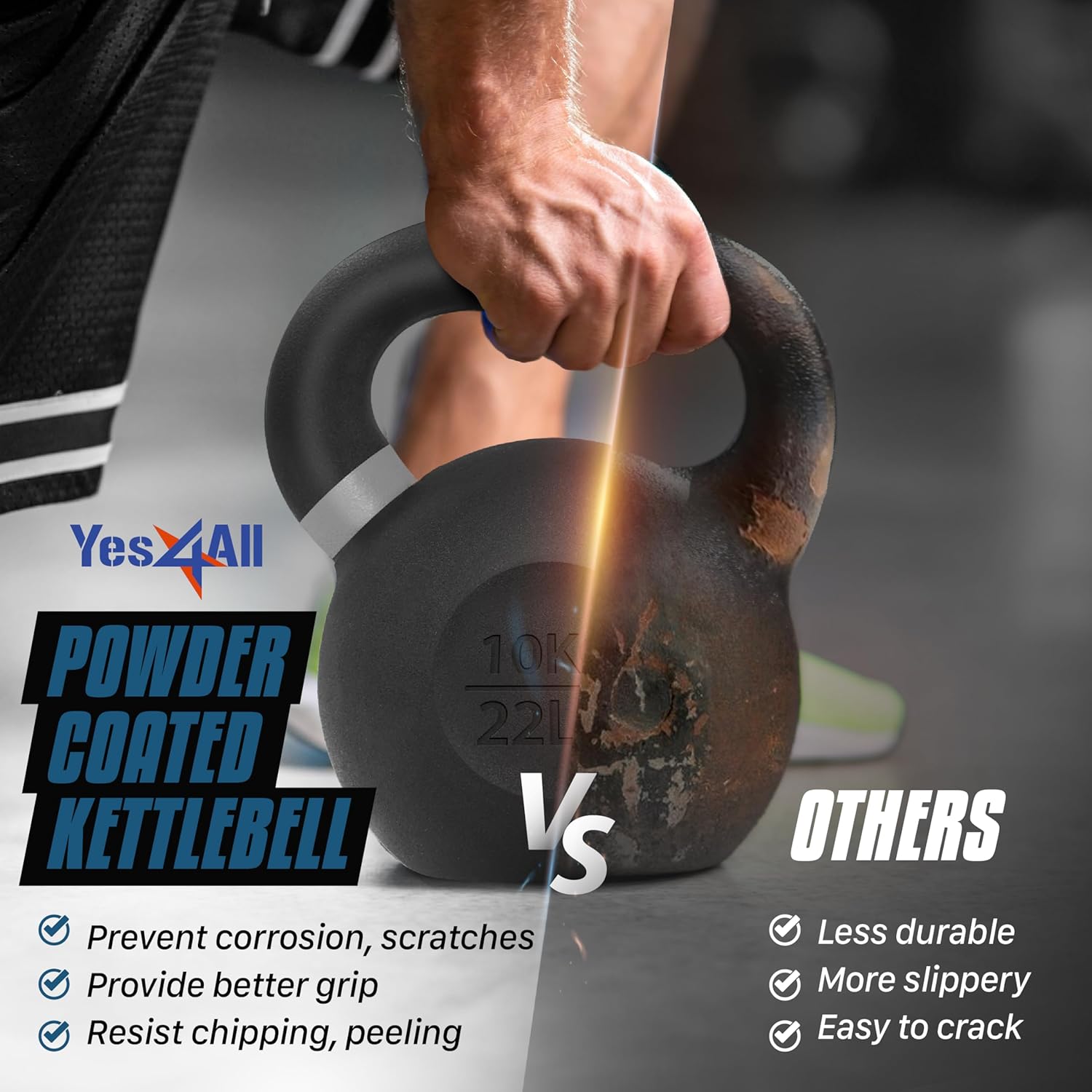 Yes4All Powder Coated Cast Iron Kettlebell Strength Training Kettlebells Weight Set for Full Body Workout, Home Gym