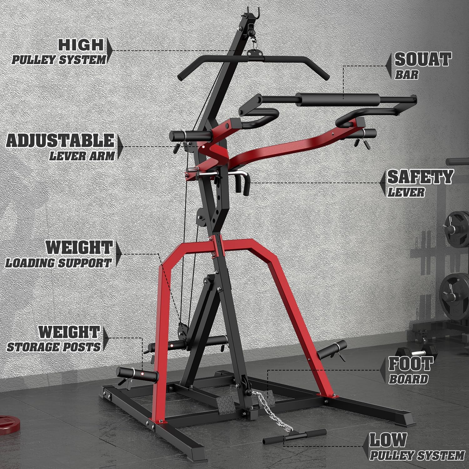 DONOW Leverage Gym Power Rack Squat Rack Lever Gym with LAT Low Row System Home Gym System Workout Station 2:1 Ratio (Without Weight Plates)