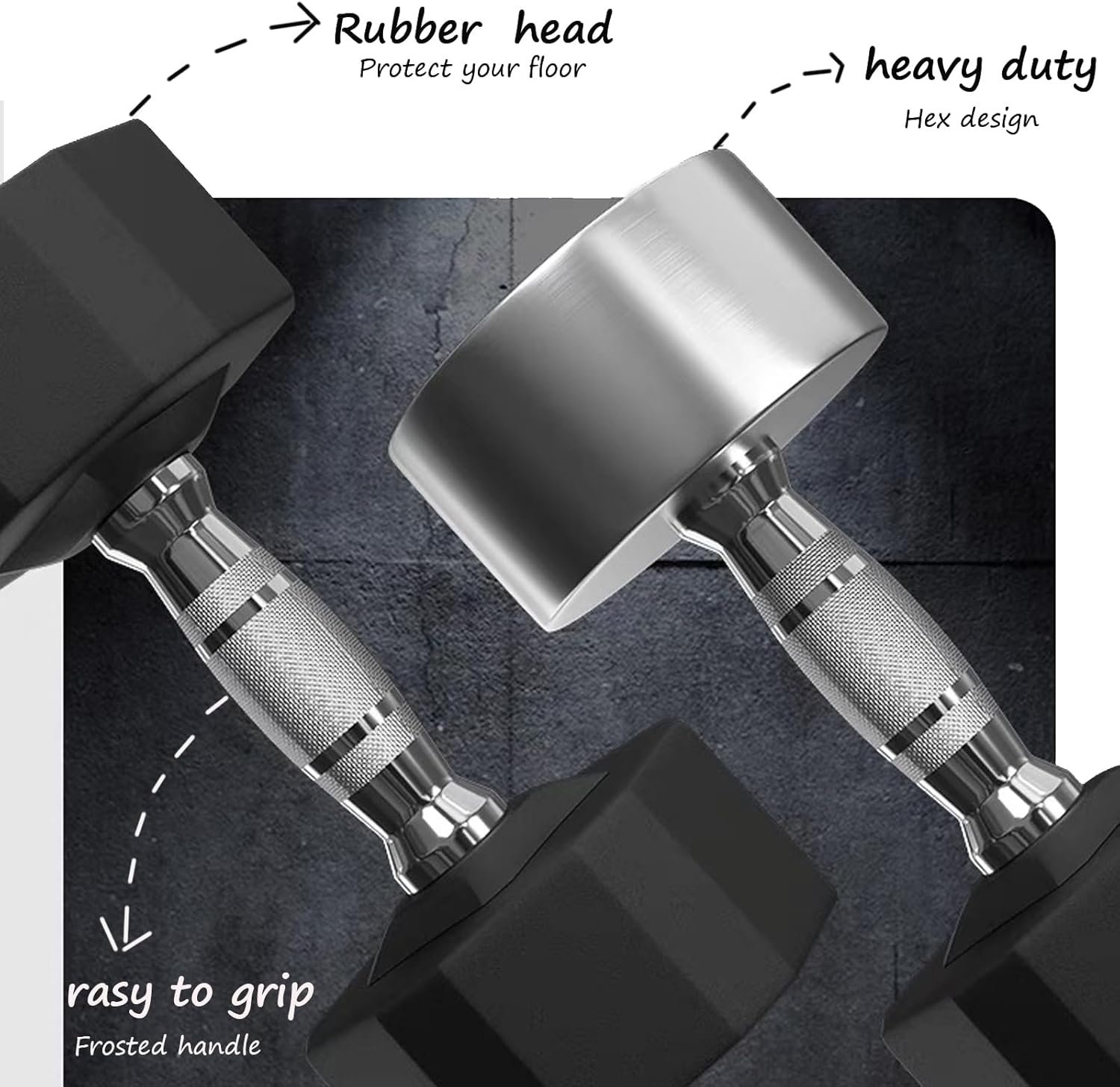 - 2. Durable Cast Iron Hex Dumbbells with Protective Coating Crafted with solid cast iron and a rugged black powder finish, these dumbbell sets resist chipping, odors, and wear. The hexagon-shaped ends prevent rolling, while the premium coating ensures long-lasting performance—perfect for any home gym.