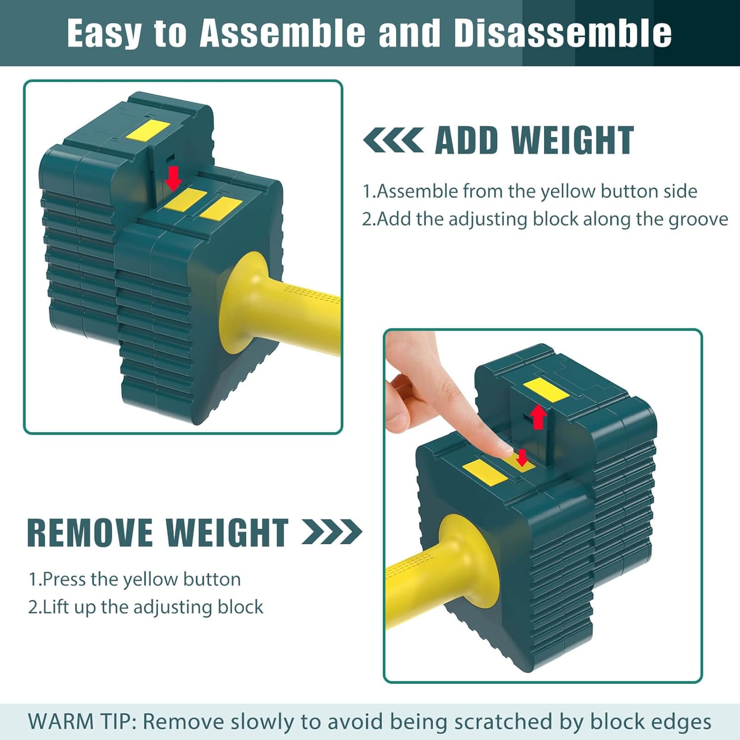 - 【SAFE AND STABLE】Adjustable dumbbells set equipped with security lock, no need to worry about the block being loose during use. And the square design allows the multi-weight dumbbells stable and won’t roll randomly, giving you a better experience.