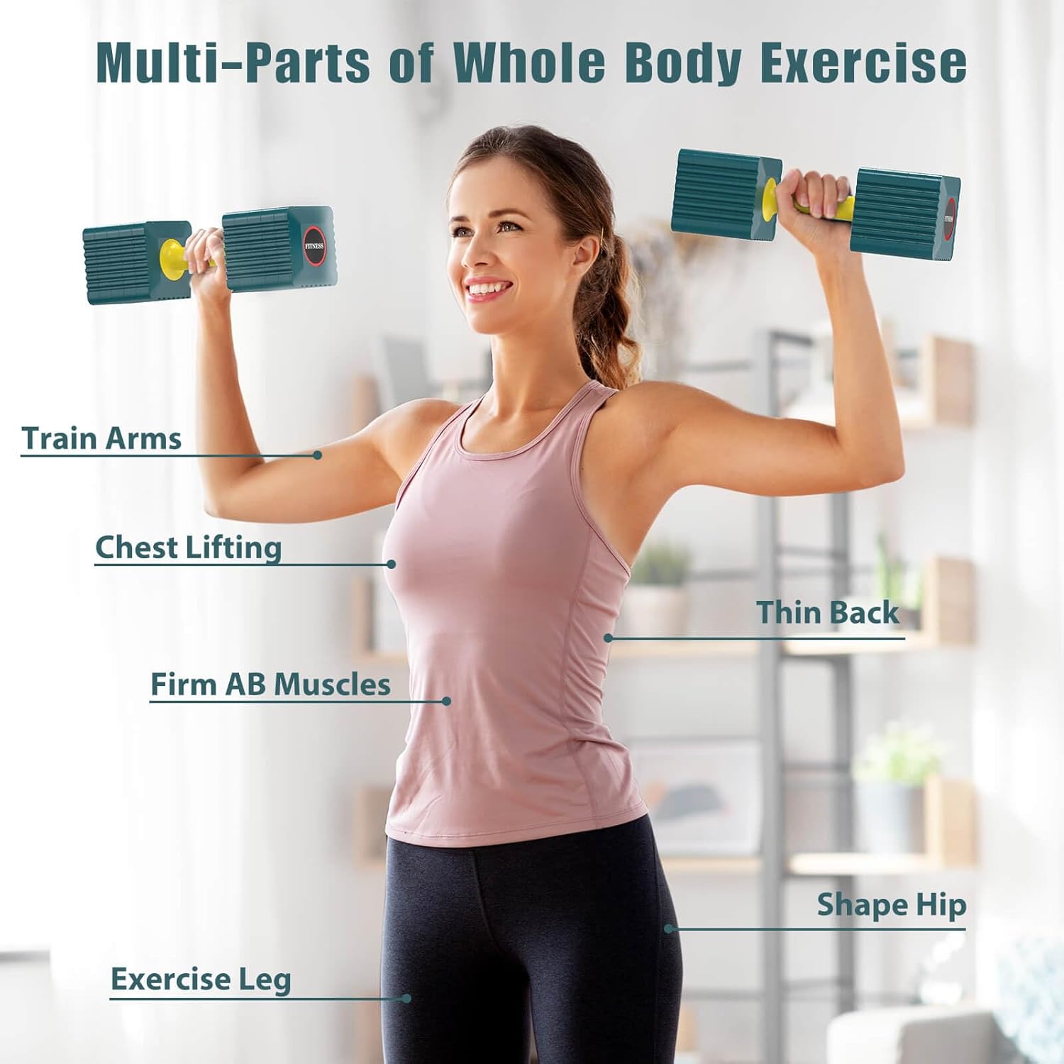 - 【FULL BODY EXERCISE】Multi weight dumbbell set can help you do whole body workout by choosing the right weight to combine different exercises. With this efficient adjustable dumbbell, your ideal physique is no longer just a dream!