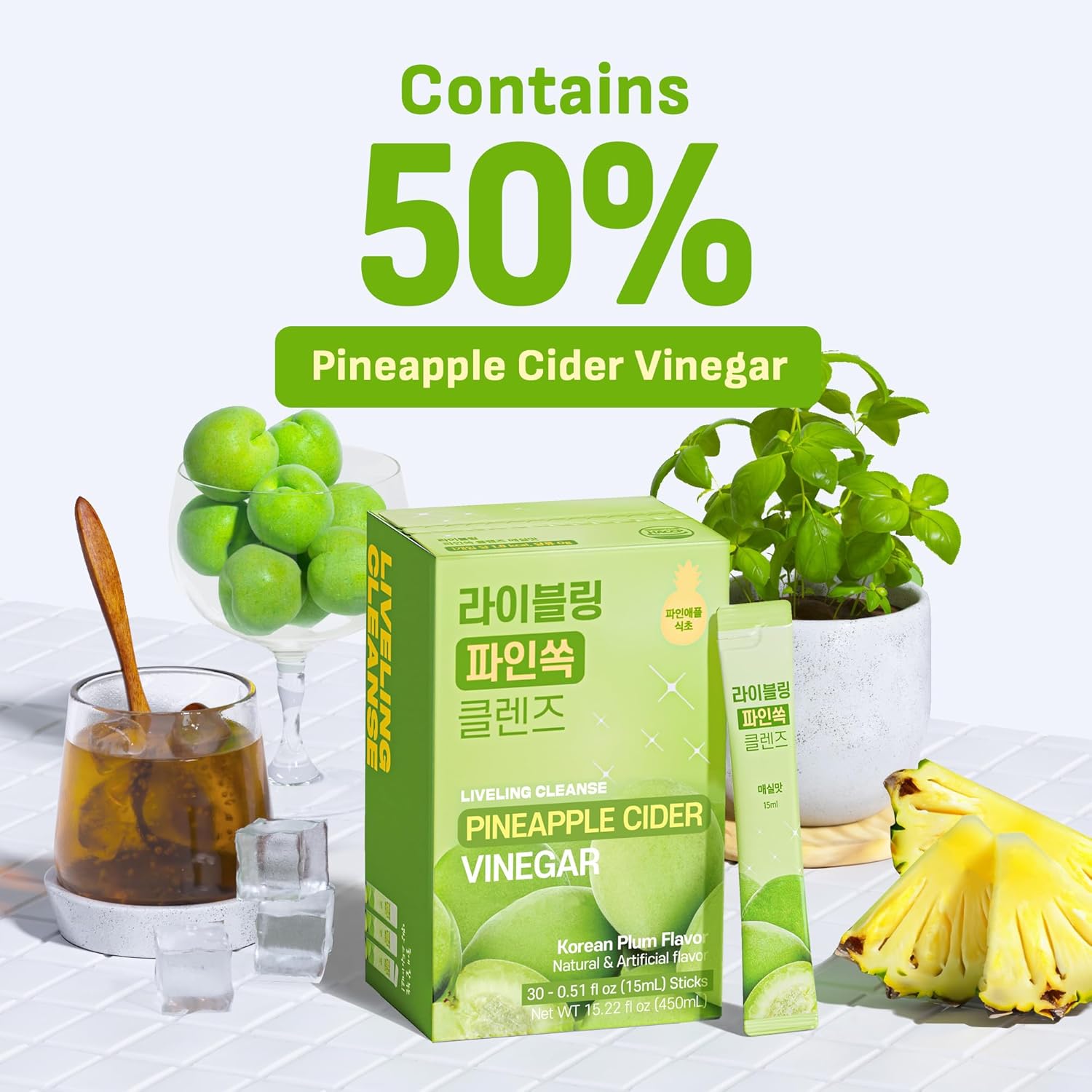[Liveling] Pineapple Cider Vinegar Drink Stick – Korean-Plum Flavor | Supports Digestion, Daily Cleanse, Sugar-Free, Low-Calorie, Portable On-The-Go Packets (30 sticks)
