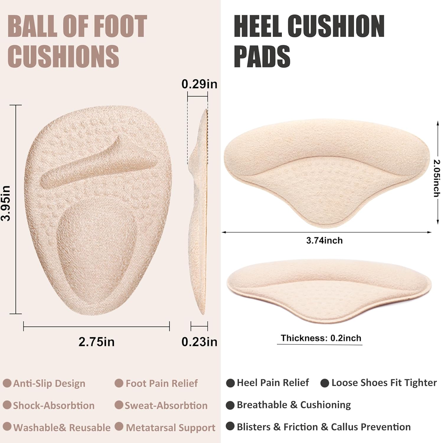 Ball of Foot Cushions,Metatarsal Pads for Women,Heel Cushion Pads, Heel Grips Liners for Heel Pain Relief, Blisters,Friction, Non-Slip Shoe Inserts for Loose Shoes,Shoe Fillers Make Shoes Fit Tighter