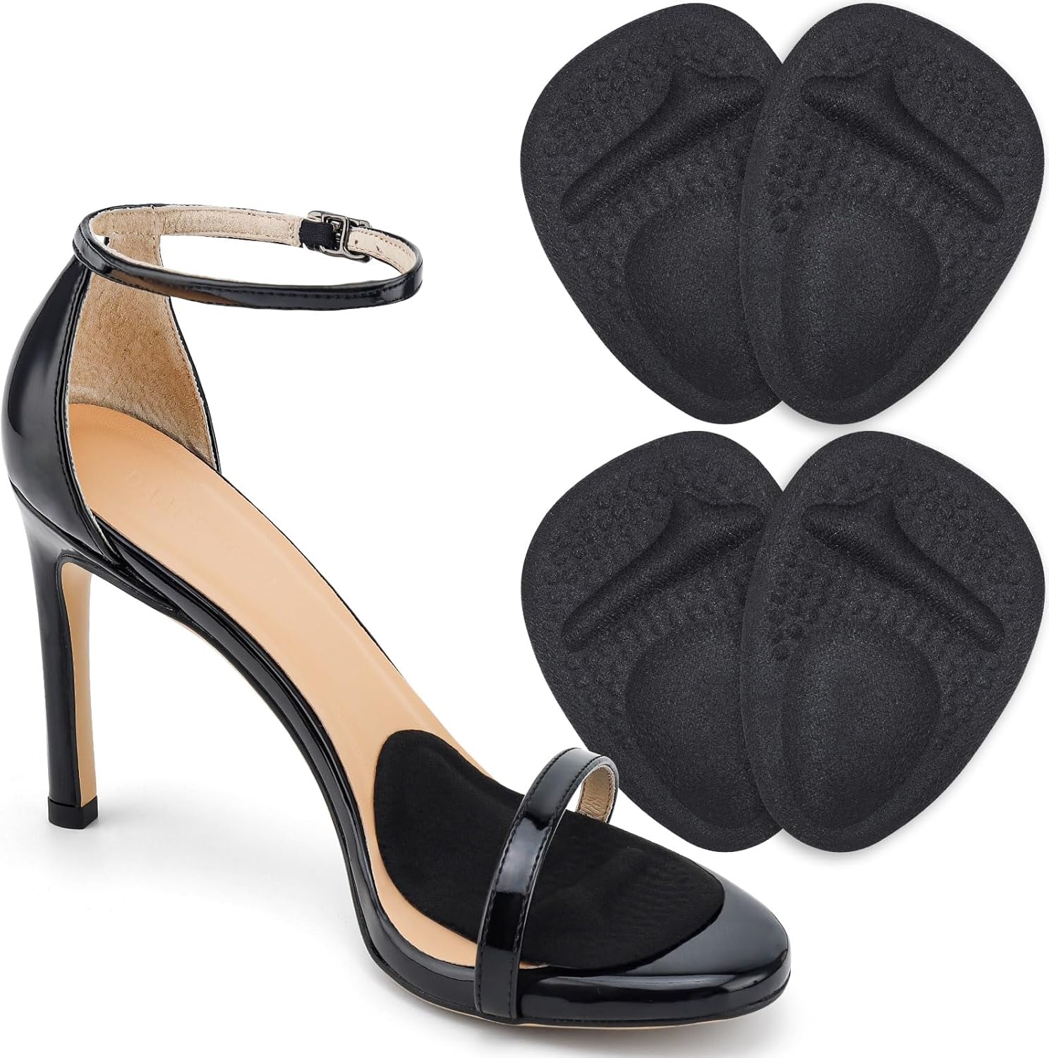 Ball of Foot Cushions, Metatarsal Pads Women, High Heels Non-Slip Comfort Pads, Shoe Support for Metatarsalgia Mortons Neuroma Pain Relief (2 Pairs,Black)