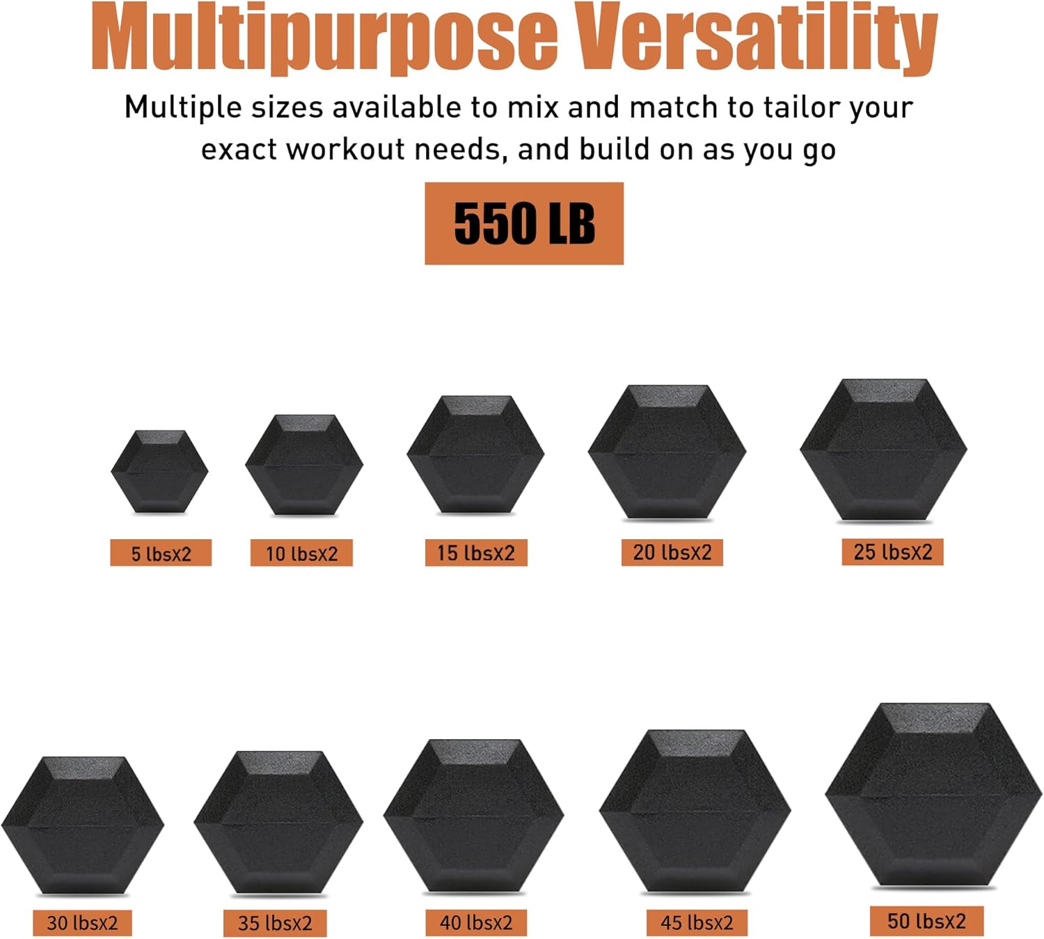 Ritafer 350-550 lbs Hex Weight Dumbbell Set with Rack 5-50 lbs Hand Weights for Strength Training for Home Gyms Rubber Iron Coated Dumbbells Exercise & Fitness Equipment to Training Strength Muscle