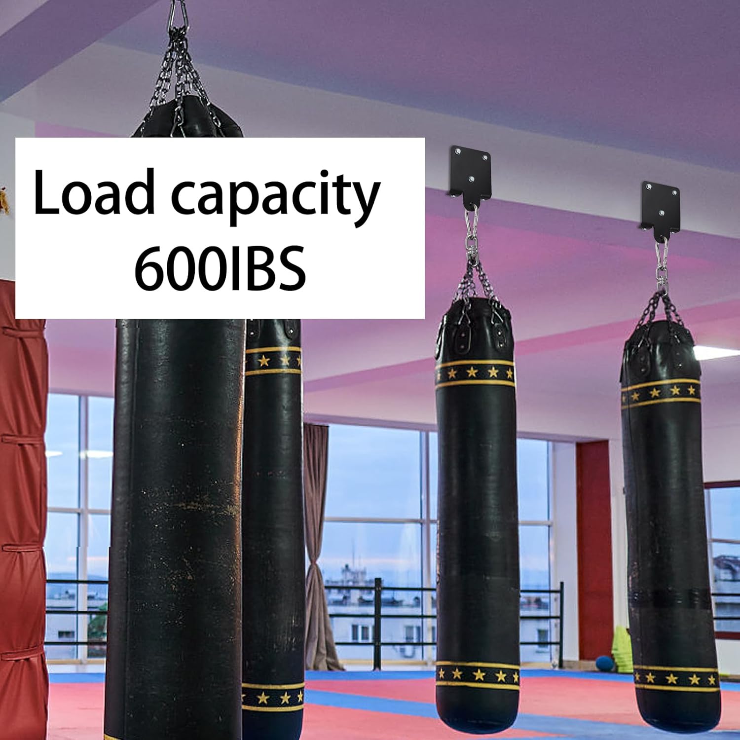 - Material: Our heavy bag hanger is made of solid steel and heavy duty construction, high hardness and sturdier for 600 pounds. The black powder coating treatment prevents corrosion and keeps the hook at its best performance