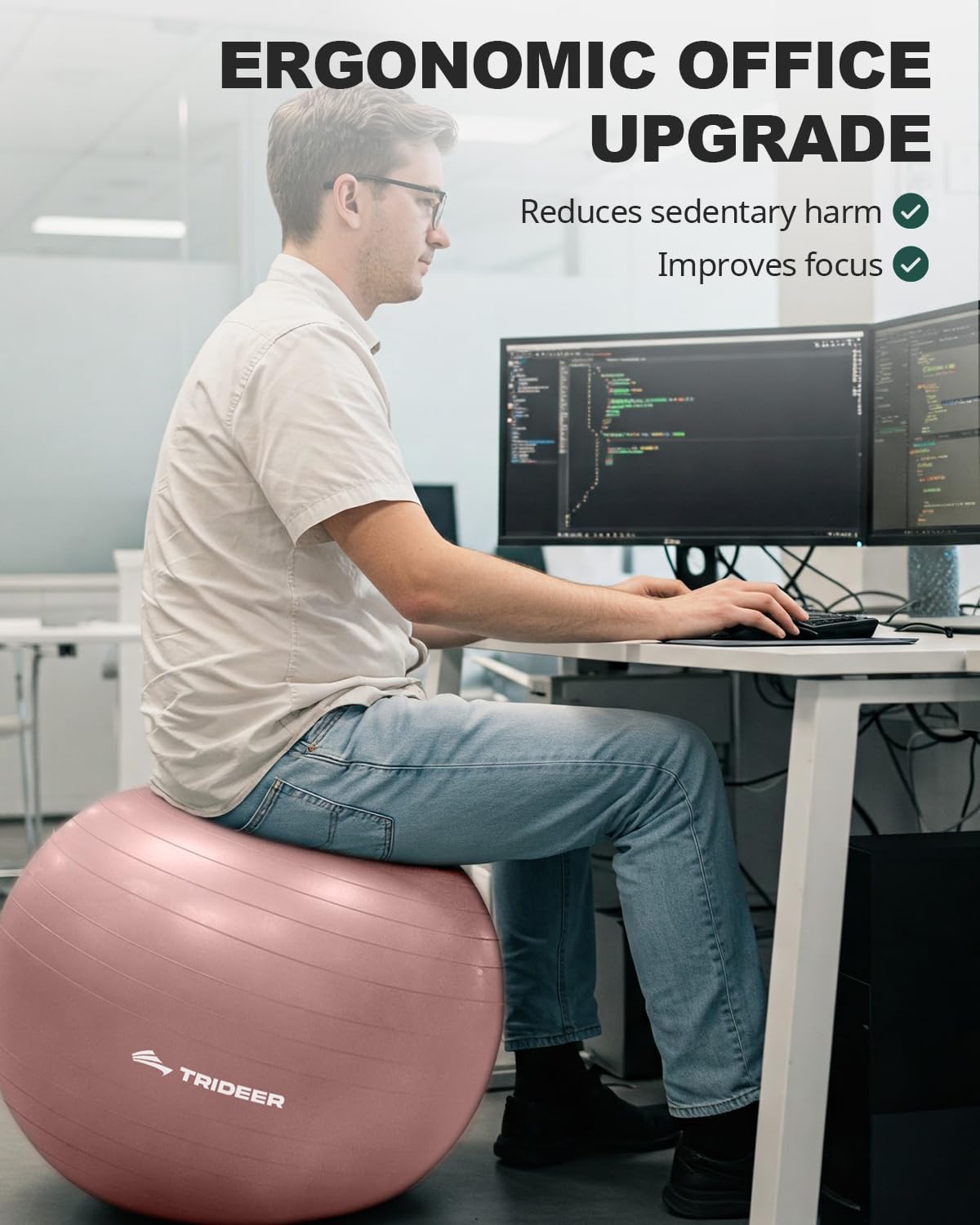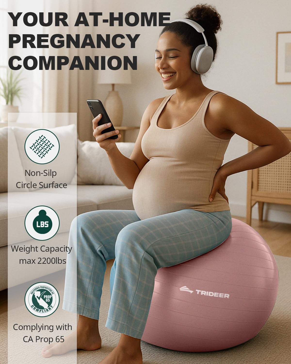 Trideer Yoga Ball – Anti-Burst Exercise Ball for Pregnancy, Office, Birthing, Stretching & Core Workout – Home Gym & Therapy