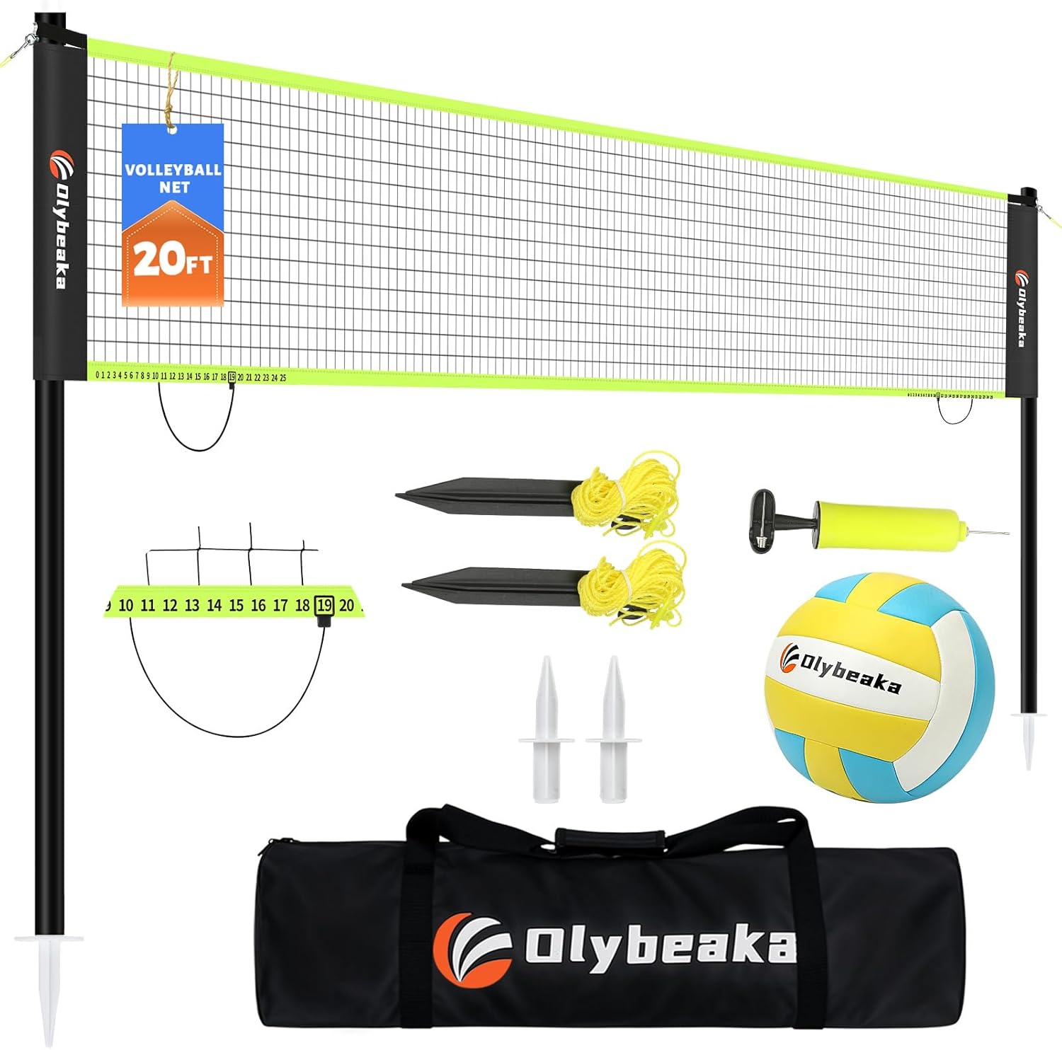20FT Outdoor Volleyball Net Set System for Backyard Beach with Anti-Sagging Net, Iron Adjustable Height Poles, Soft PU Volleyball and Pump, Carry Bag - Instant Set Up & Durable