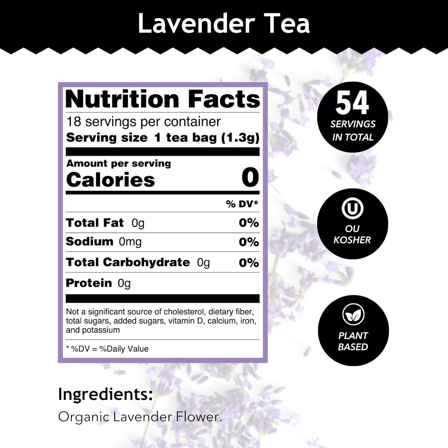 - LAVENDER TEA - Lavender is one of the most admired herbs worldwide, and our Lavender Tea’s subtle essence brings delight and benefits that help to support a healthy body and mind. Our Lavender Tea is available in a three pack of 18 tea bags each.