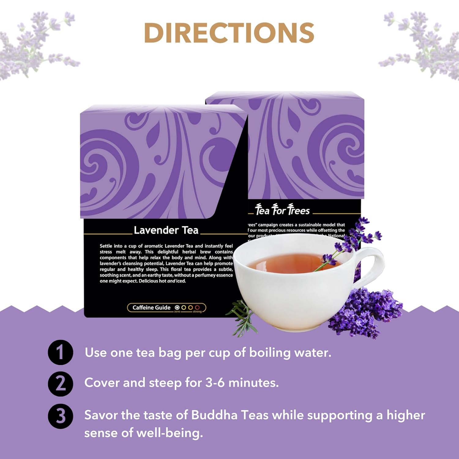 Buddha Teas - Organic Lavender Tea - Herbal Tea - For Health & Wellbeing - With Antioxidants & Minerals - Clean Ingredients - Caffeine Free - OU Kosher & Non-GMO - 18 Tea Bags (Pack of 3)