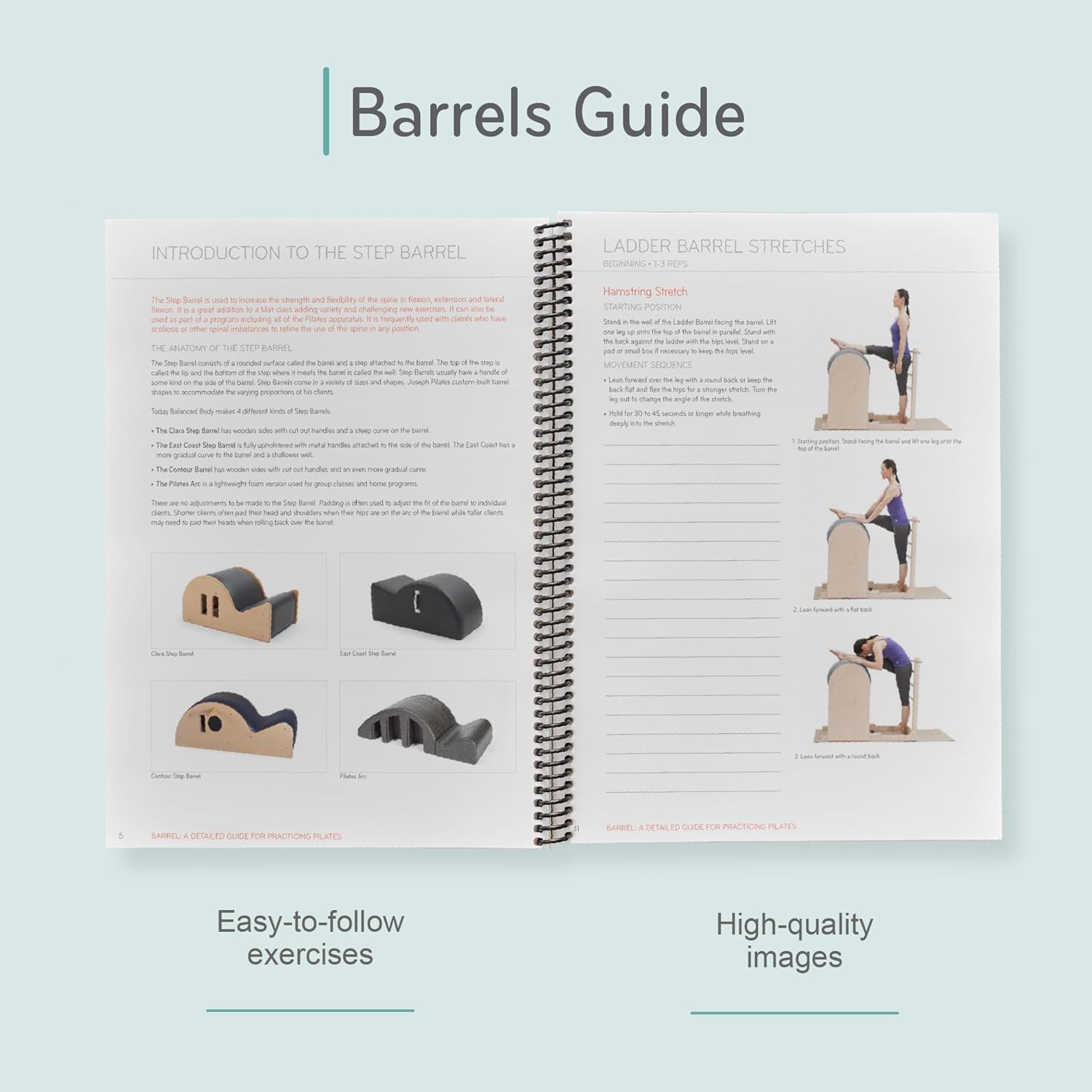 - PILATES EQUIPMENT GUIDE: Maximize your Pilates workout with our Barrels Guide. This useful exercise guide features 49 pages with 21 exercises, full-color pictures, and step-by-step instructions so you can get the most from your Barrel workout