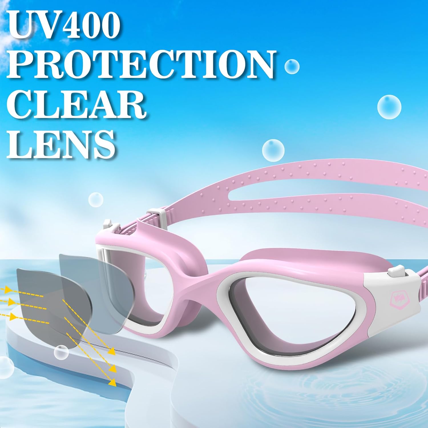 - 🌈【Crystal Clear PC Lenses & 100 percent UV Protection Coatings】: protect your eyes from harmful UV rays. Making you see clearer and offering a obvious stereoscopic vision effect. It is a ideal choice for indoor&outdoor swimming, pool swimming and night swimming.