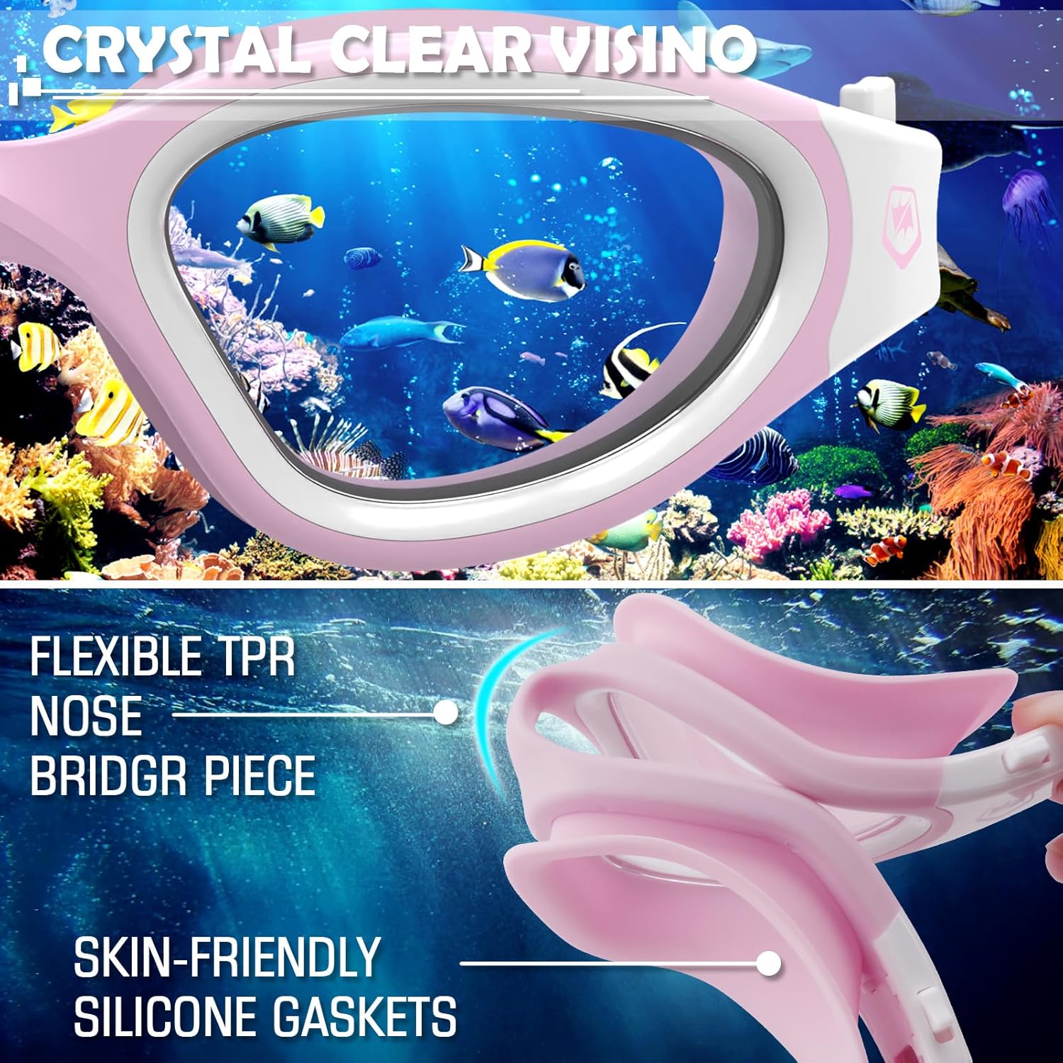 - 💖【Full Silicone Frame & Zero PVC】: hypoallergenic, soft and long-lasting, adopts to different face shapes with ultimate comfort; Self-adjusting TPR nose bridge piece ensures a comfortable fit and won't hurt your nose bridge; Anti slip dual straps reduce force to your head and increase the comfort