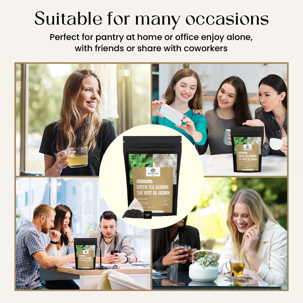 Jasmine Green Tea Bags, 100 Counts, Mountain Loose Leaf Green Tea, Flavored, Delightful Aroma, Sugar Free, 100% Natural Gluten Free, Medium Caffeine Brew As Hot, Cold Or Iced Tea