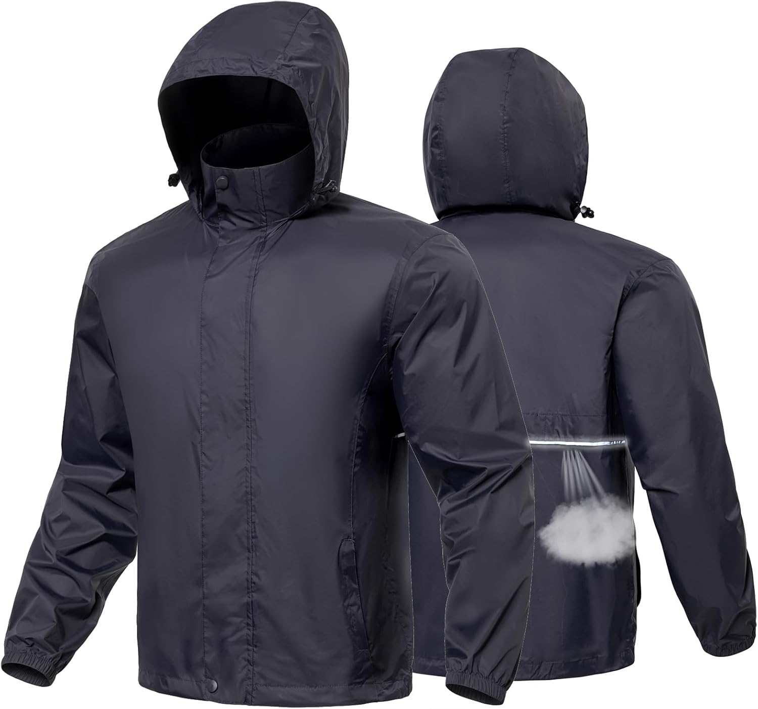 - 【Outdoor Activities Gear】Mens lightweight rain jacket waterproof with hood suilable for casual wear, outdoor activities, like golf, hiking, camping, cycling, climbing, working, running, traveling, fishing, motorcycling. It is also suilt for spring, summer, autumn, winter all season.