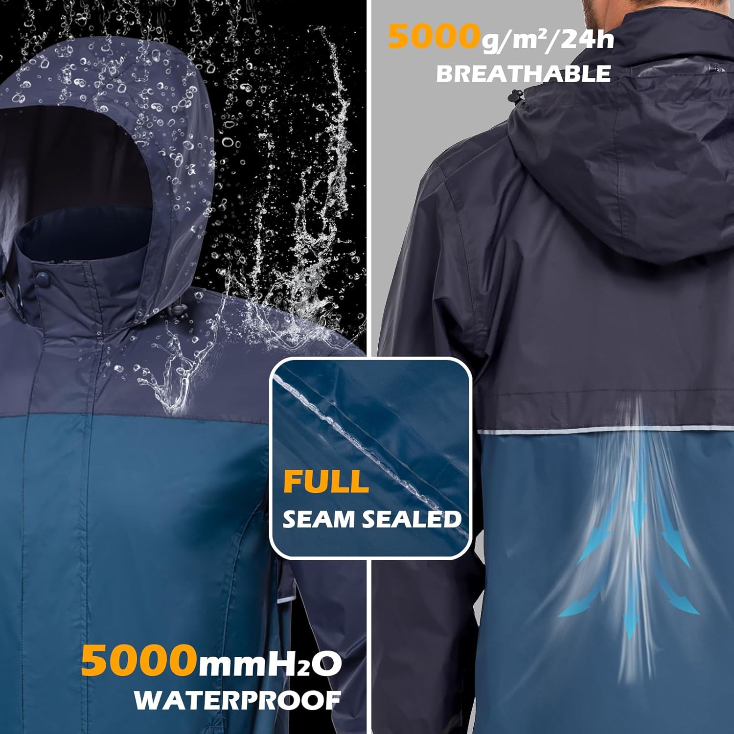 - 【Outdoor Activities Gear】Mens lightweight rain jacket waterproof with hood suilable for casual wear, outdoor activities, like golf, hiking, camping, cycling, climbing, working, running, traveling, fishing, motorcycling. It is also suilt for spring, summer, autumn, winter all season.