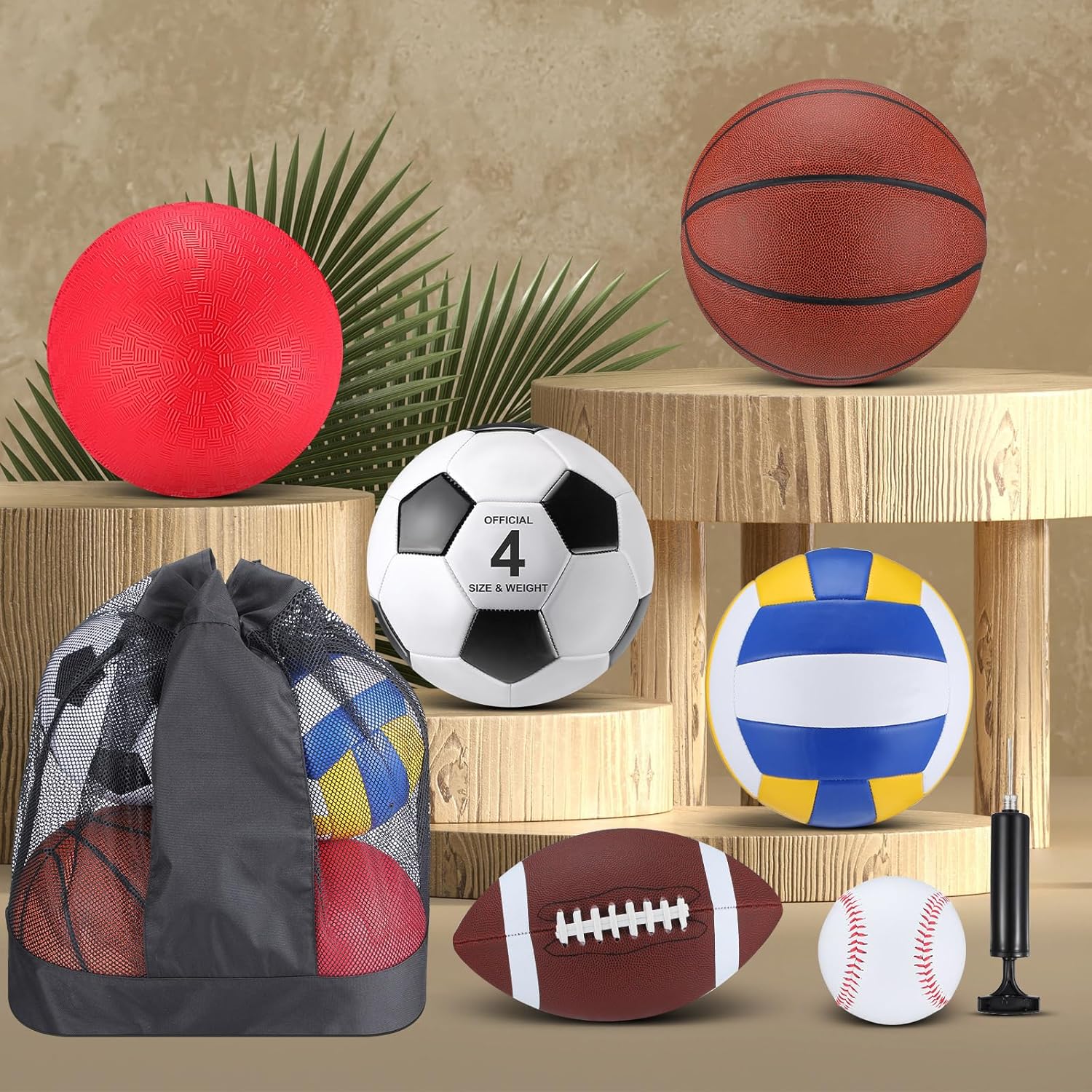 - 6 Ball Set: this sport ball set has all of your kid favorite sports covered; You will receive football, basketball, soccer ball, volleyball, playground ball, baseball, pump, and large capacity carry bag which can holds up to 6 balls; Grab kids' friend and play a game of sport balls