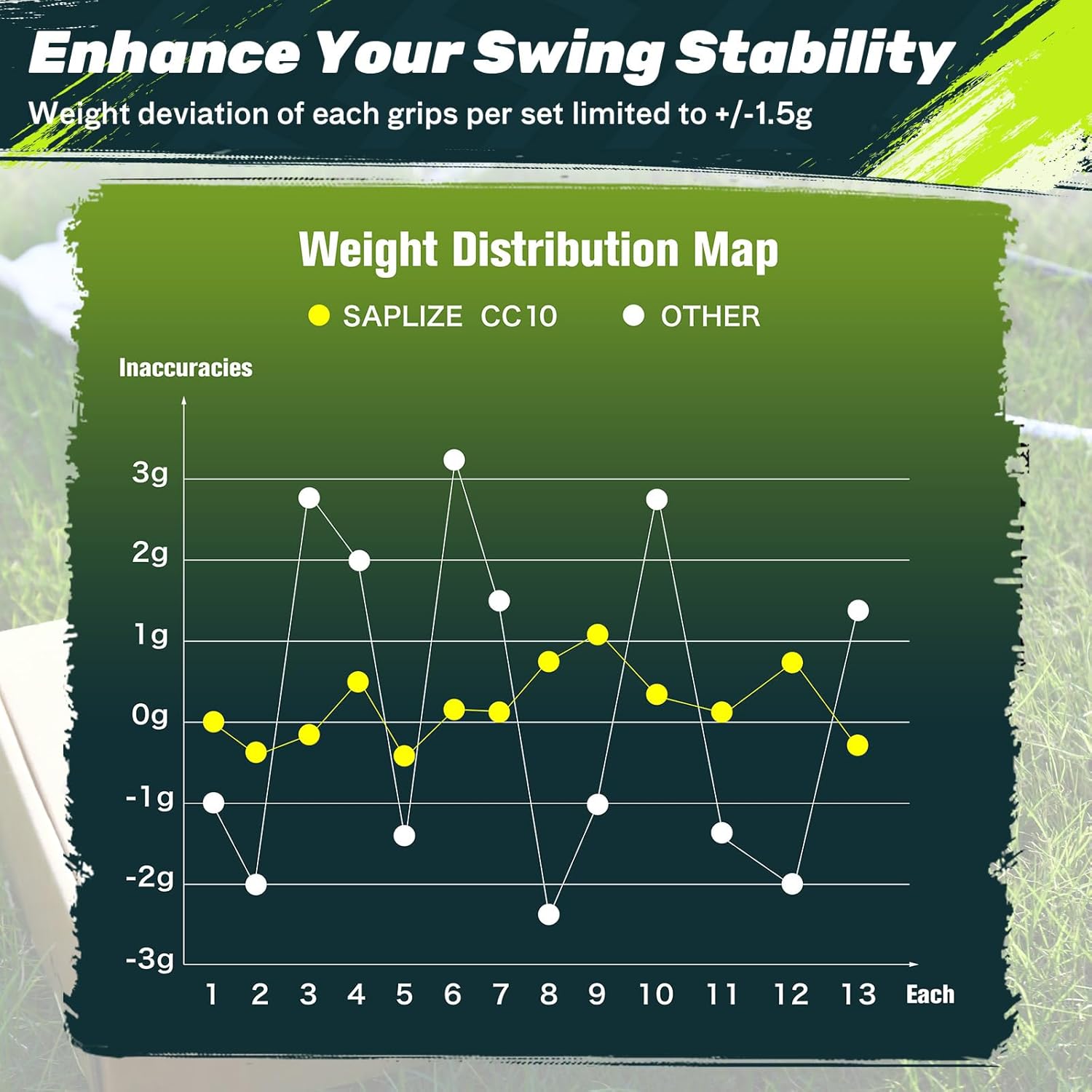 - Enhance Your Swing Stability: The weight deviation of the 13 grips set is limited to +/-1.5 g. Comparing with the industry standard of +/- 3 g, this will greatly enhance your swing stability and allow you to fully enjoy your golfing time
