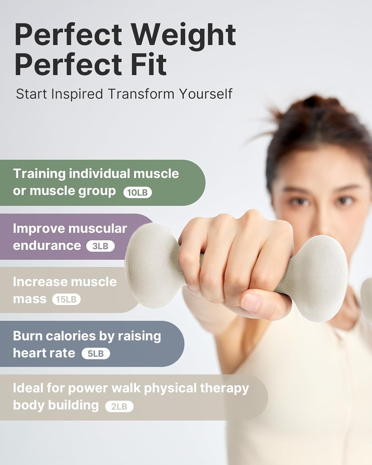- 3.Multiple Weight Options for All Fitness Levels: Available in various weight options, including the popular 5 pound dumbbells set of 2, our weights dumbbells set is ideal for all fitness levels. Whether youโre a beginner or advanced, these hand weights sets for women offer an excellent way to tone muscles and increase strength, making them the perfect addition to any weights set for home gym