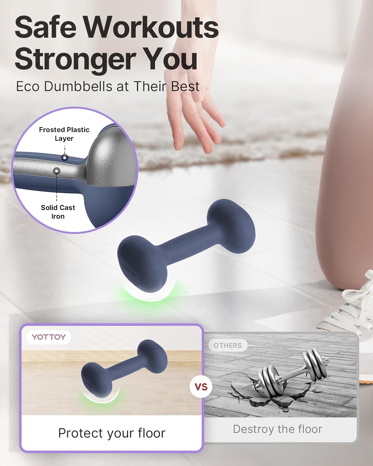 - 2.Anti-Roll Design for Easy Storage: The no-roll head design ensures that the dumbbells set of 2 stays securely in place, preventing unwanted movement. These rubber dumbbells are perfect for easy storage in your weights set for home gym, ensuring your workout space remains organized and safe. Ideal for weights for women at home