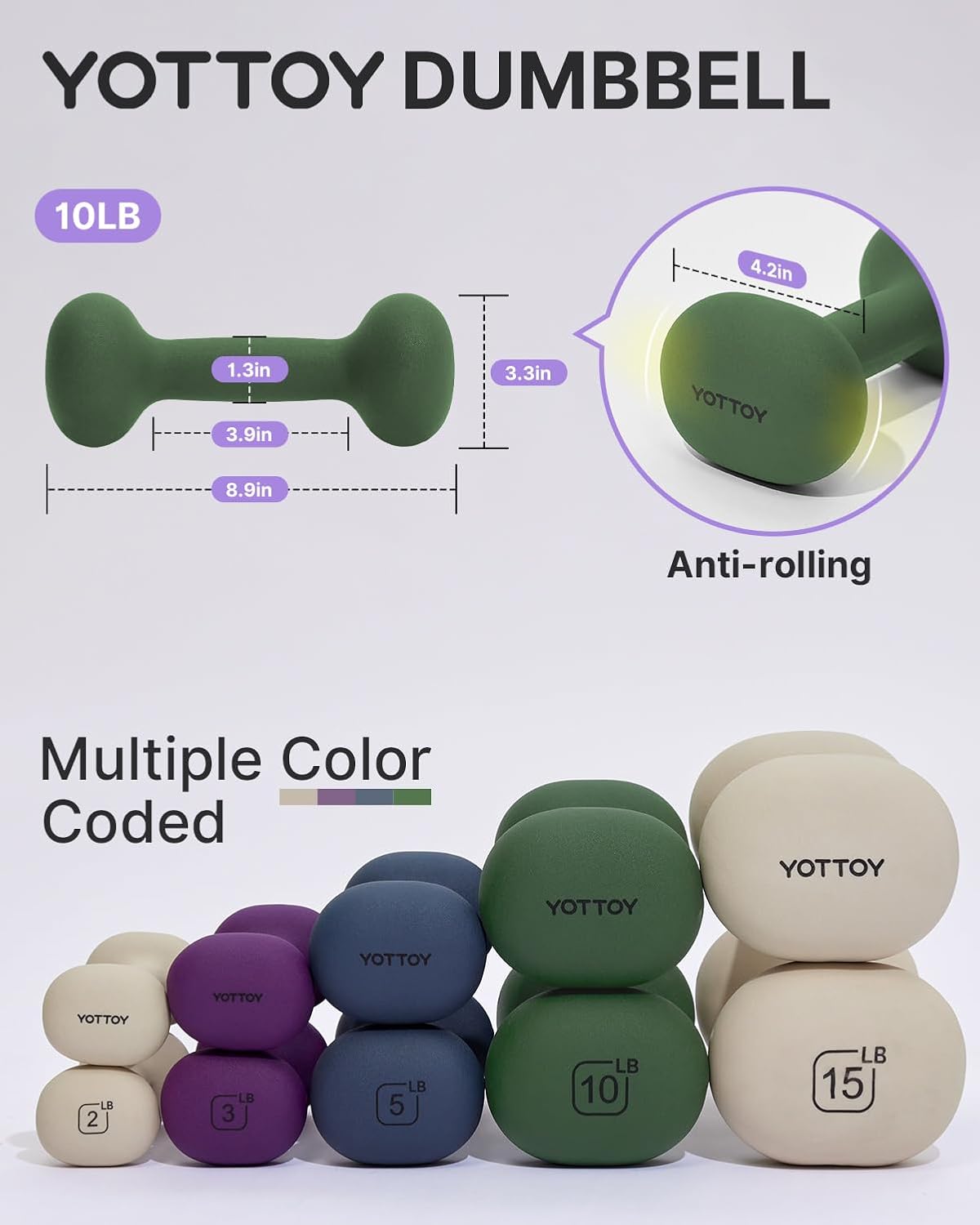 YOTTOY Weights Dumbbells Set for Women,2-15 Pound Dumbbells Set of 2, Non-Slip Hand Weights for Home Workouts, Portable Strength Training Neoprene dumbbells